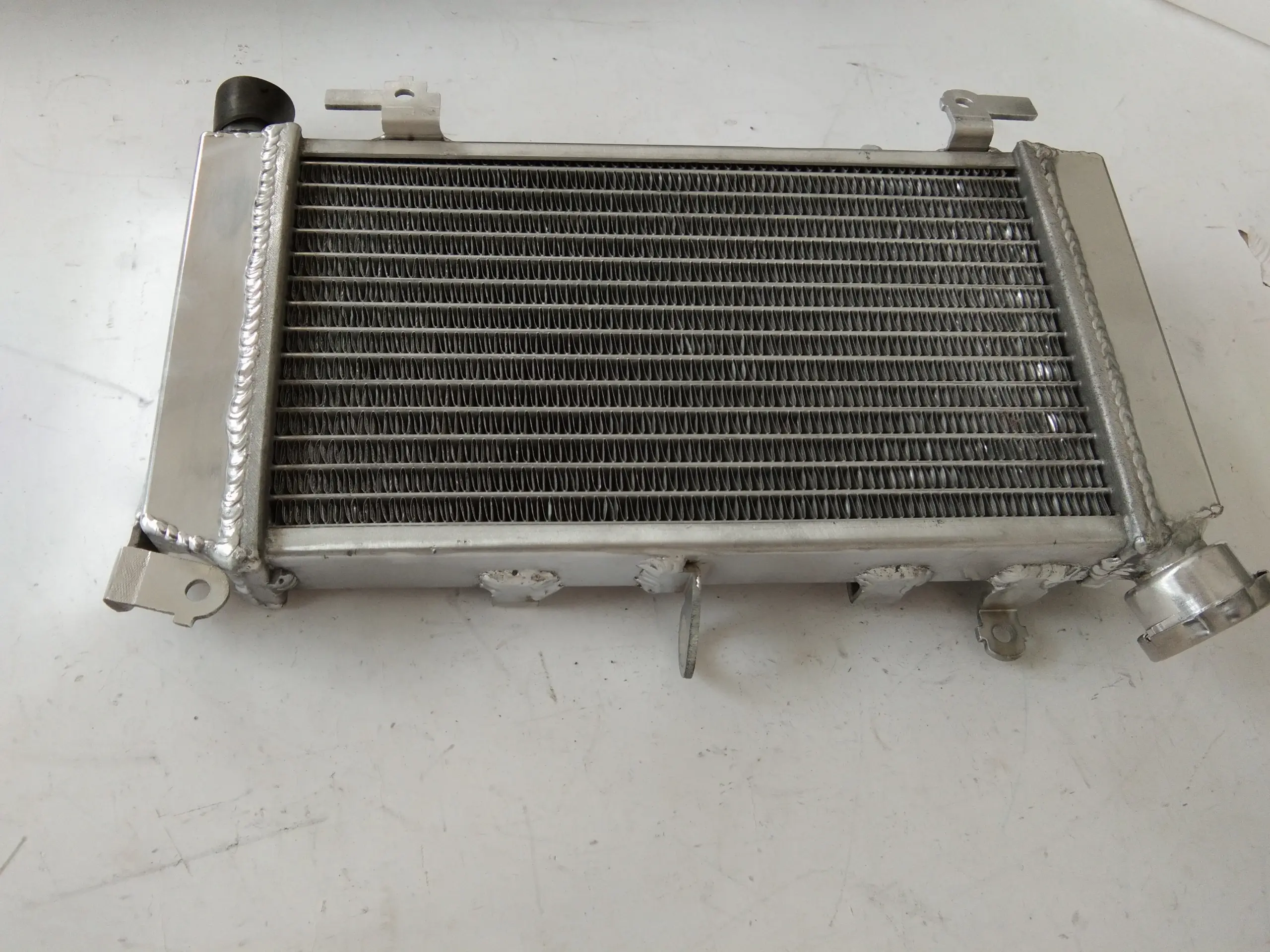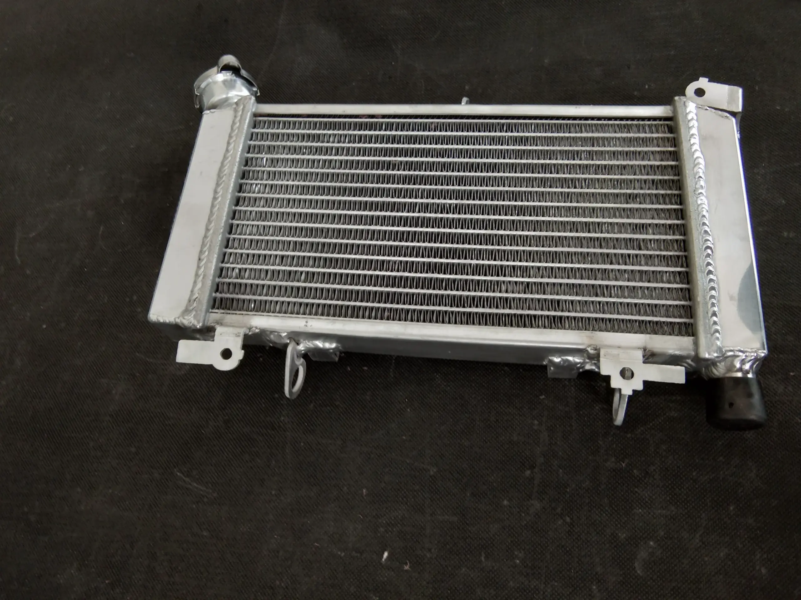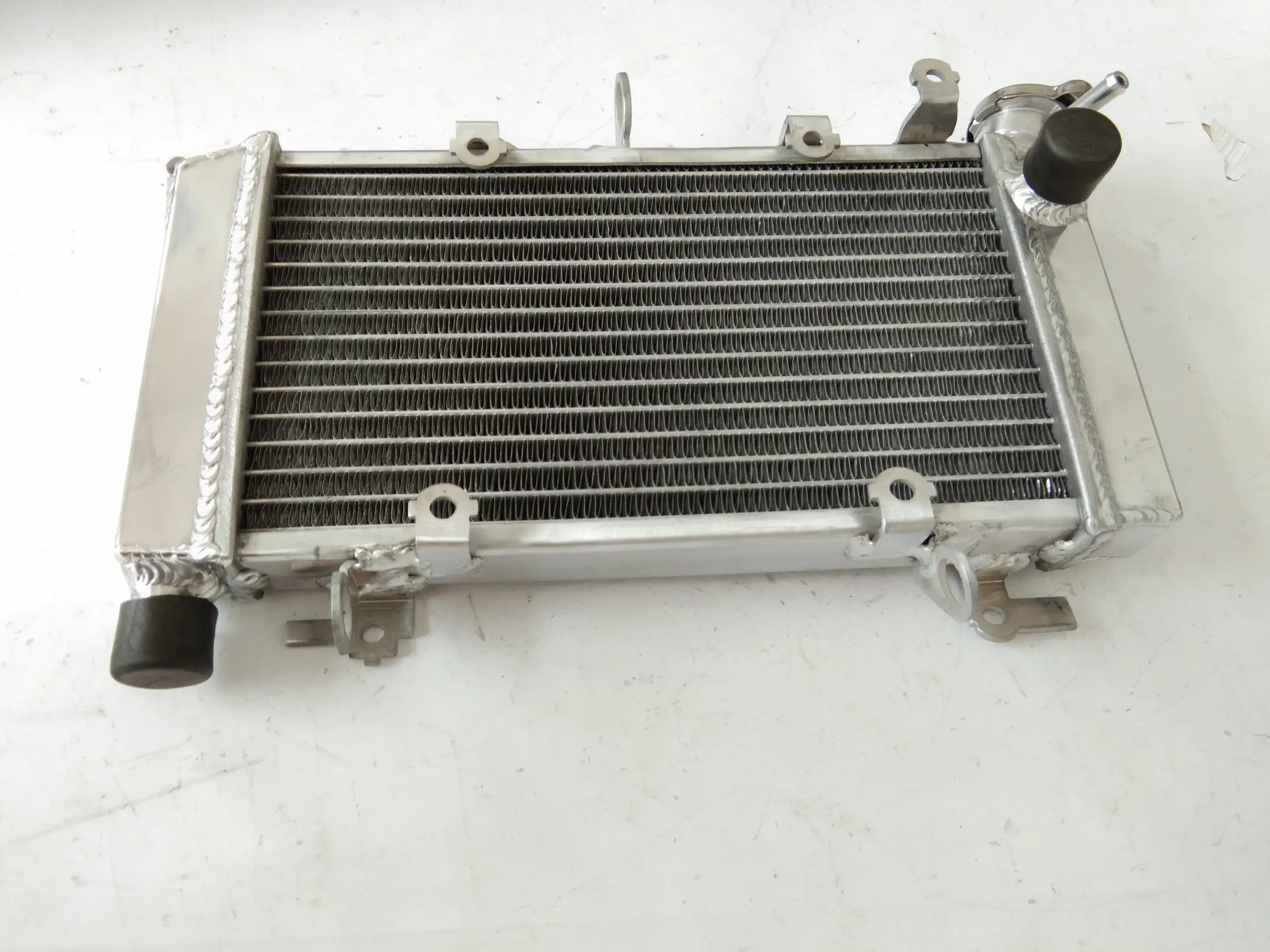 Imagine yourself riding with confidence, knowing your bike stays cool even during intense rides or racing conditions. This new aluminum radiator offers exceptional cooling performance, thanks to a precisely engineered core measuring 263×158×26mm and overall dimensions of 352×222×68mm. Made entirely from lightweight T-6061 aluminum, it features welded tanks and core produced using vacuum brazing and TIG welding for superior durability. Its sleek, polished surface showcases fine, horizontally aligned fins that enhance heat dissipation. Designed for heavy-duty use, this radiator surpasses OEM standards by increasing cooling capacity by about 40%, ensuring your engine maintains optimal temperature. Easy to install with minimal modifications, it provides reliability, efficiency, and a professional aesthetic.