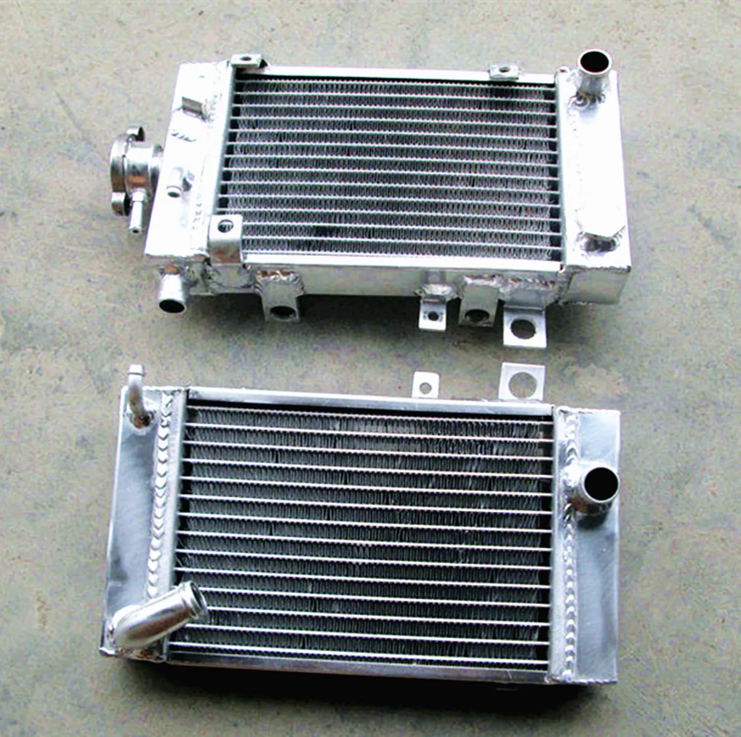 - Made from durable T-6061 aluminum, including the core and tanks, for lightweight strength and corrosion resistance, ideal for heavy-duty motorcycle cooling applications.
