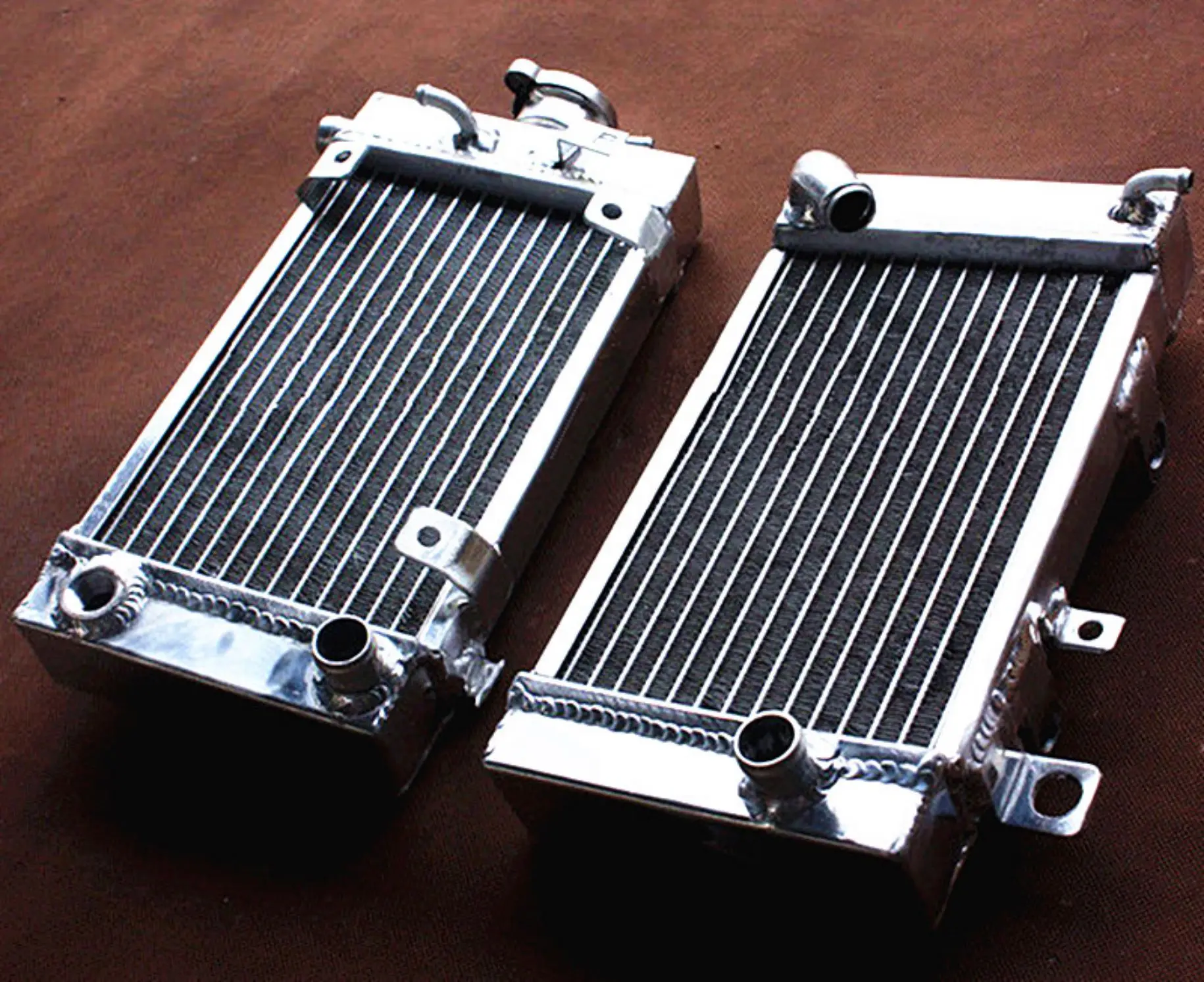 Experience superior cooling efficiency with this premium aluminum radiator set designed specifically for the 2000-2006 Honda Transalp 650 (XL650V). Crafted from high-quality T-6061 aluminum, including the core and tanks, this radiator features a polished, sleek metallic finish that exudes a professional, industrial look. The core is meticulously vacuum brazed without epoxy, ensuring maximum strength and durability, while the TIG-welded tanks guarantee a seamless finish and leak-proof performance. With a 40% increase in cooling capacity compared to standard radiators, it keeps your motorcycle operating at optimal temperatures even during demanding rides. Its lightweight yet robust design promotes better handling and long-lasting reliability, making it an essential upgrade for serious enthusiasts seeking enhanced performance.