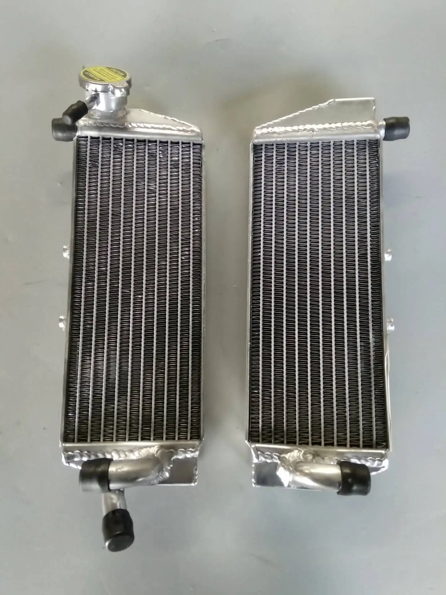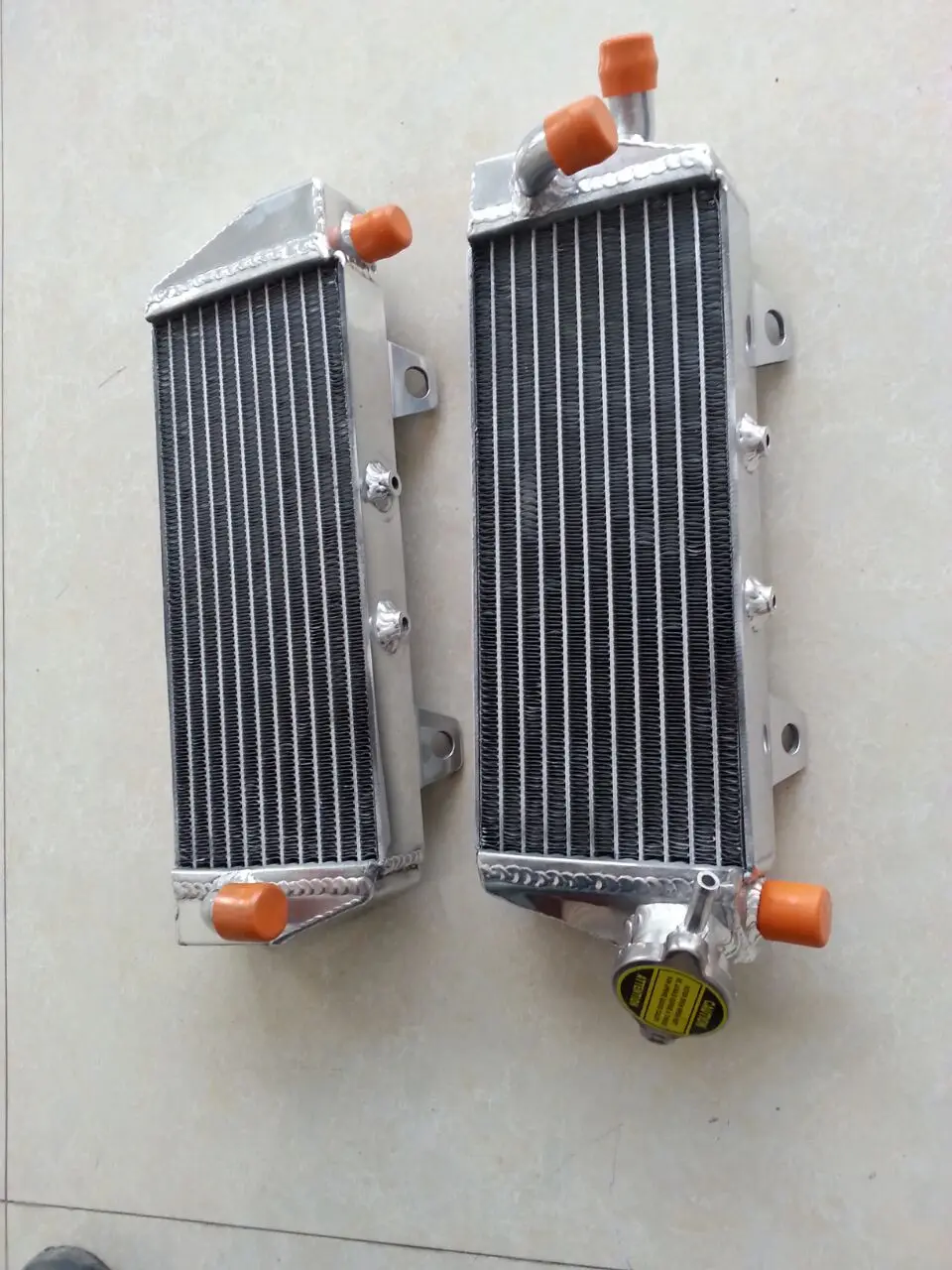 Enhance your KTM or Husqvarna motorcycle with this durable set of two aluminum radiators, specifically designed for 2016-2018 models including 125, 150 SX; 250, 350 SX-F; 250, 350 EXC-F; 150, 250, 300 XC-W, FC250, FC350, TE125, TE250, TE300, TE350. Crafted from T-6061 aluminum with vacuum brazed cores and TIG-welded tanks, these radiators offer a 40% increase in cooling capacity over standard parts, exceeding OEM standards. Their reliable, heavy-duty construction ensures longevity and resistance to heat stress, with seamless installation and minimal modifications needed. Guaranteeing factory quality with a 1-year warranty, they are essential for high-performance riding.