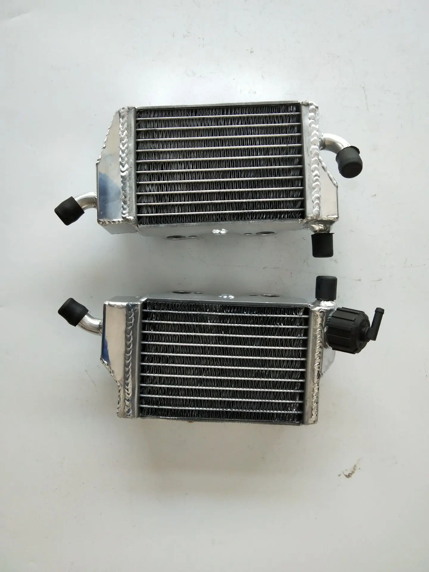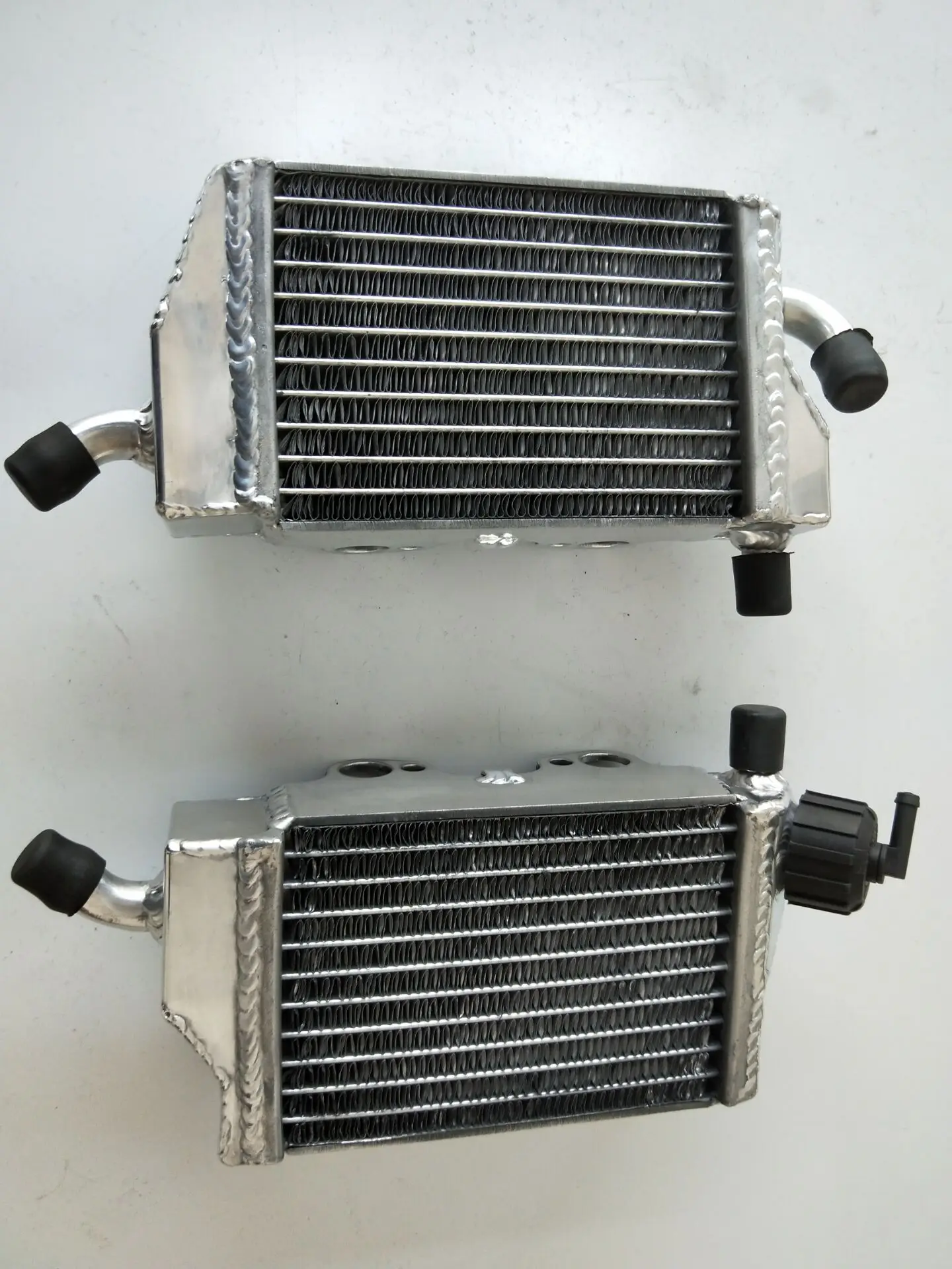 Experience a new level of cooling efficiency with this premium aluminum radiator set designed specifically for KTM 65 SX models from 2016 to 2022. Crafted from aircraft-grade T-6061 aluminum, these radiators feature a sleek, modern rectangular design with a durable matte black finish. The core is vacuum brazed for superior strength and thermal conductivity, while the tanks are seamlessly TIG welded, ensuring long-lasting durability. With an approximately 40% increase in cooling capacity over standard OEM parts, they excel in heavy-duty performance environments. Installation is straightforward, requiring minimal modifications, making them an excellent upgrade for your motorcycle. Designed to withstand demanding conditions, these radiators are your reliable solution for optimal engine temperature management.