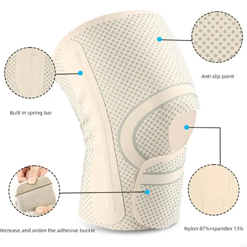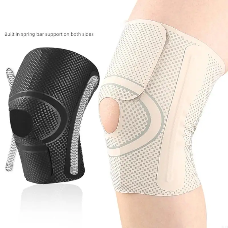 Experience optimal knee stability and comfort with this high-quality knee support brace, expertly designed for active individuals. Crafted from breathable nylon and Spandex blend, it offers a lightweight (43-44 grams) and seamless fit that conforms to your leg’s shape. The circular opening around the kneecap allows for freedom of movement while reducing pressure on the patella. Embedded flexible metal springs on the sides provide additional stabilization, ensuring confidence during intense activities like running, basketball, or volleyball. Its adjustable design makes it suitable for different leg sizes, in sizes M and L. This brace’s sleek, skin-toned or black finish merges functionality with a subtle aesthetic, perfect for maintaining your active lifestyle comfortably and securely.