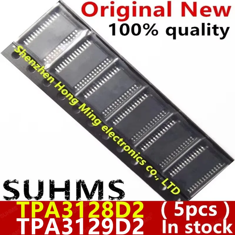 Enhance your audio projects with this set of five high-quality, brand-new drive ICs, including models TPA3128D2, TPA3129D2, TPA3128D2DAPR, and TPA3129D2DAPR, all in SOP-28 packages. Designed for computer audio applications, these sleek black rectangular chips feature evenly spaced metallic pins for precise connection, ensuring reliable performance within standard supply voltage and dissipation power ranges. Packaged in a clear, molded plastic tray for secure handling and organization, the set exemplifies modern craftsmanship and technical excellence. Whether upgrading or building custom audio solutions, these components offer optimal functionality, proven efficiency, and top-tier quality to help you achieve the perfect sound.