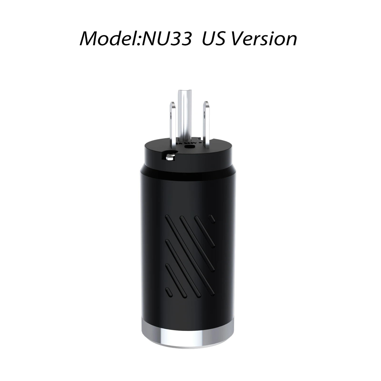 Experience pristine sound quality with this advanced portable Hifi Audio power purifier. Designed to filter out unwanted noise and EMI, it ensures a cleaner, clearer audio experience. Crafted with high-quality materials, it features a sleek cylindrical shape with textured grooved surfaces that provide excellent grip and a modern aesthetic. Its compact size (39mm diameter and 102mm length for the US version) makes it easy to include in your setup, whether at home or in a professional environment. Available in stylish finishes with options for rhodium or gold-plated plugs, this device combines durability, sophistication, and top-tier performance. Equipped with essential safety features like lightning protection, ground wire detection, and phase reversal prevention, it offers peace of mind while preserving audio fidelity.