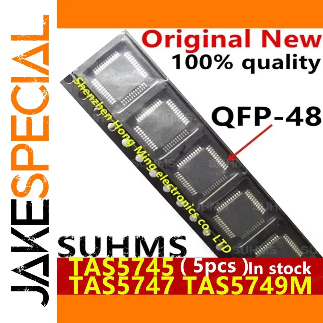 Experience reliable performance with this set of five new drive ICs, including models TAS5745, TAS5747, TAS5749M, TAS5745PHPR, TAS5747PHPR, and TAS5749MPHPR, all housed in QFP-48 packages. Designed for computer applications, these ICs operate within standard supply voltages and feature dissipation power rated according to international standards. They are customizable, contain no high-concerned chemicals, and are suitable for a wide range of high-precision electronic projects. With their sleek, square metallic surfaces and thin, evenly spaced leads, these chips deliver a professional, high-tech aesthetic that ensures seamless installation and optimized performance in your electronic setup.