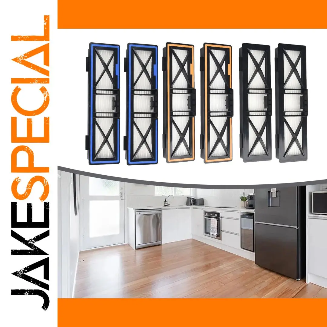 Enjoy a cleaner home with this set of six filters designed for Neato D10, D9, D8, D7, D6, D4, D3, D5, D70, D75, D85, 70E, and 945-0379. Crafted from durable, environmentally friendly ABS plastic, these filters feature advanced H13 mesh technology capable of capturing 99.97% of allergens and microscopic particles as small as 0.3 micrometers. Their sleek rectangular shape with reinforced crossbar support ensures stability during operation. The colorful accents—orange, blue, and grey—add a modern touch and help differentiate between filters. Easy to install, these filters help maintain optimal vacuum performance, improve air quality, and reduce allergens in your living space. Regular replacement every 1-2 months will keep your vacuum working effectively and your air clean.