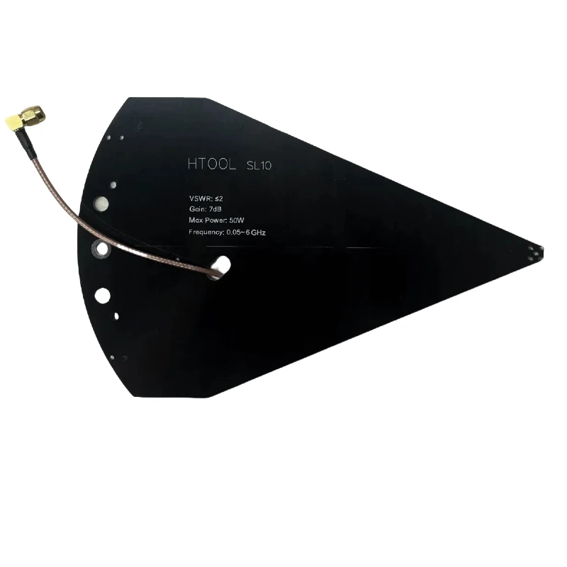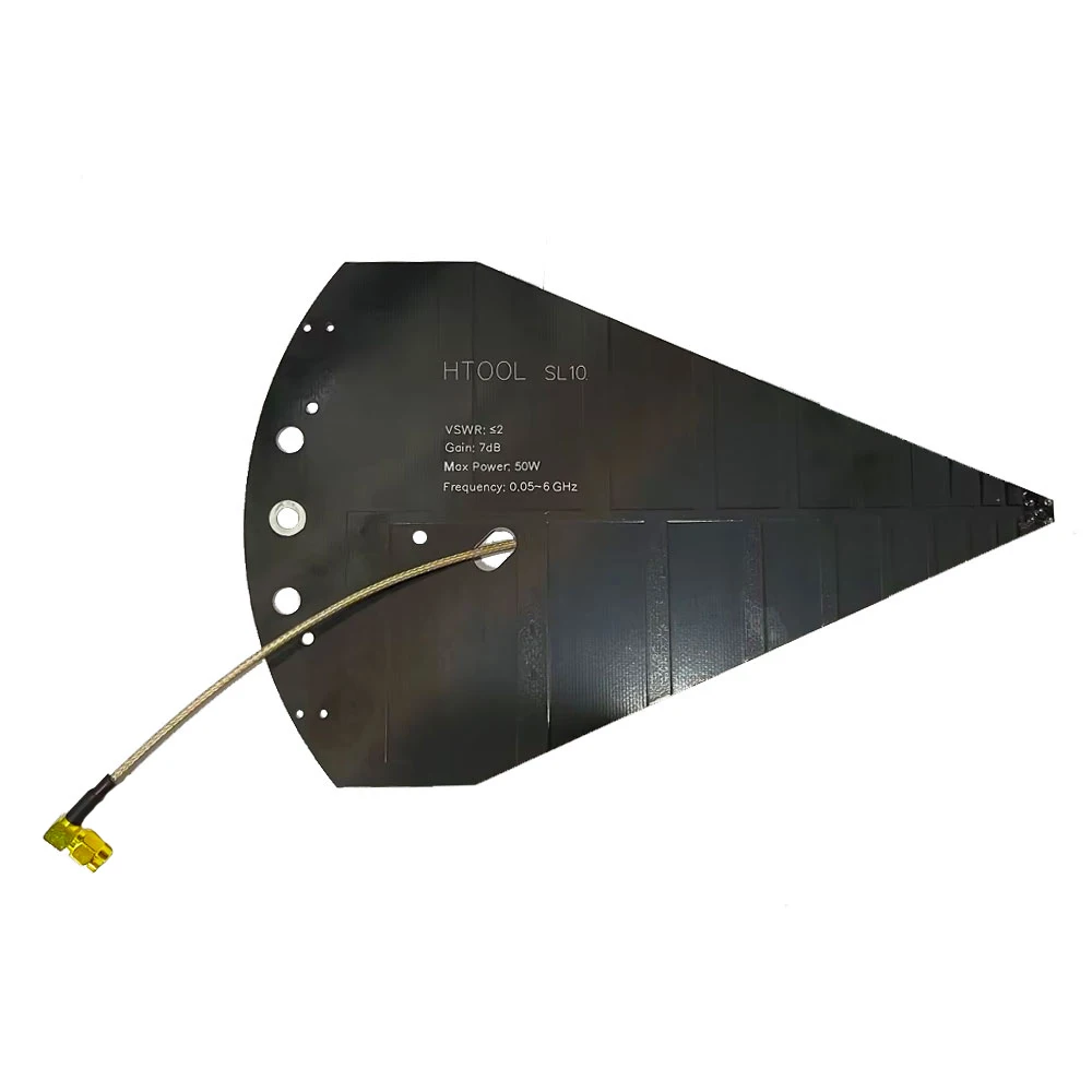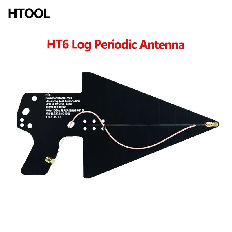 - The HT6 model covers 600MHz to 10GHz, with a 6dBi gain, VSWR < 2.2, lightweight design at 150g, dimensions of 34.5×18.3×0.15cm, and features a resilient SMA connector.