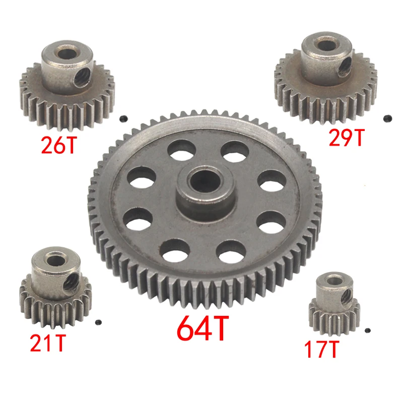 - Main gear features 64 teeth with a 3.17mm thickness, providing powerful torque transfer suitable for high-speed and off-road RC vehicle applications.