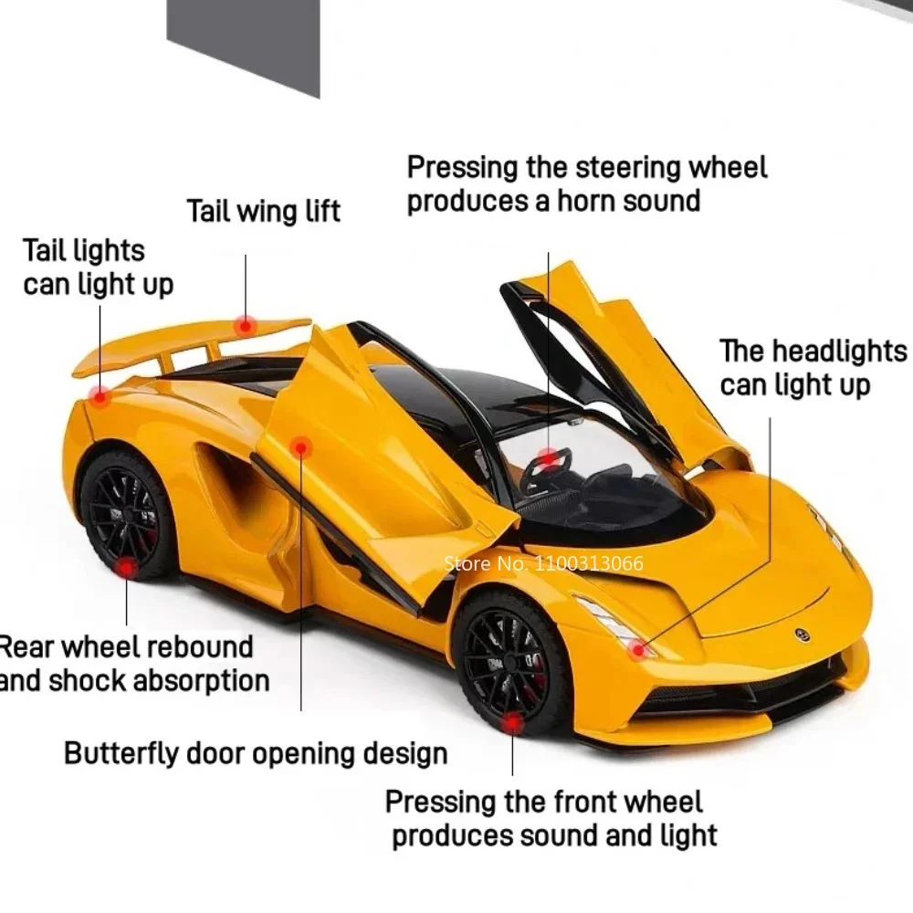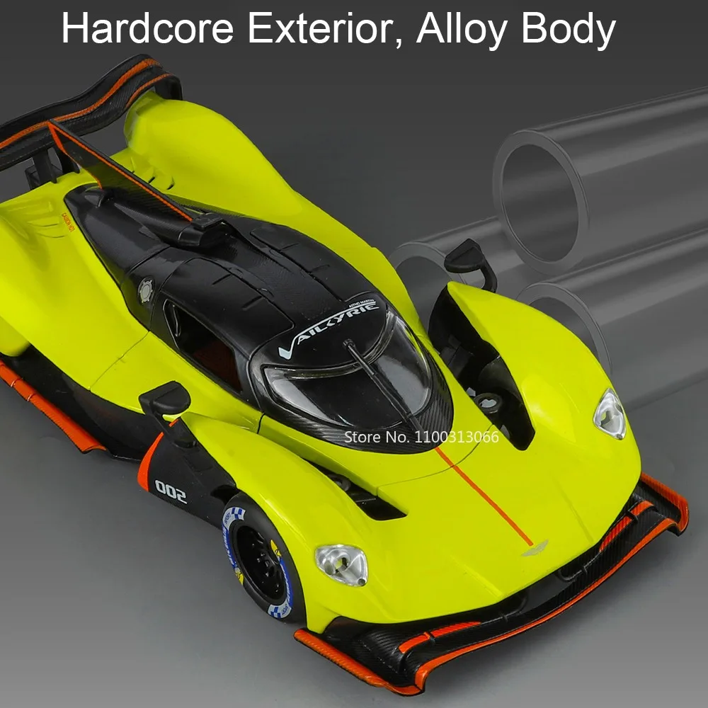 Experience the thrill of high-performance racing with this detailed 1:24 scale diecast model, crafted with a durable zinc metal alloy body and a sturdy plastic chassis, featuring realistic rubber tires. Measuring approximately 21.8 x 9 x 5 cm for the Valkyrie or 19 x 8.5 x 5 cm for the Evija model, it offers a vibrant finish in colors like black, yellow, green, gray, and silver. The model boasts functional doors that open, along with engaging sound and light effects powered by pre-installed batteries. Its pull-back mechanism enhances play and display value, making it a perfect collector’s piece for enthusiasts aged 14 and up.