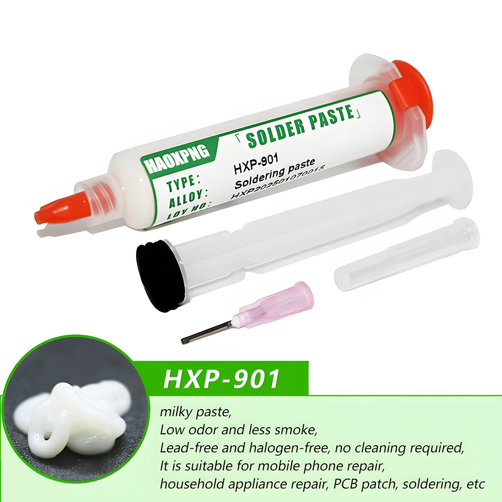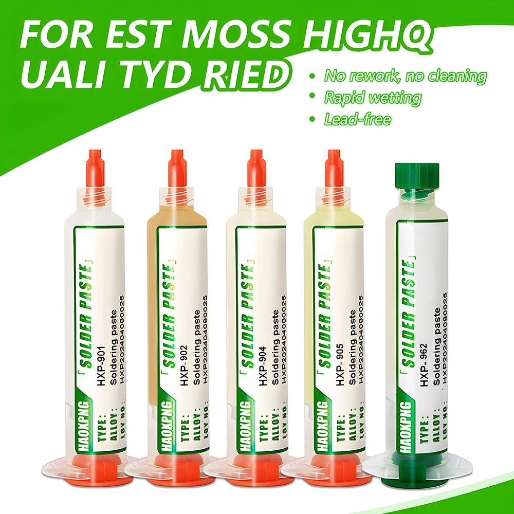 - Technical parameters include high activity, low vapor fumes, suitable for high-precision electronics repairs and manufacturing, compatible with wire soldering variants such as HXP-901-wire, etc.