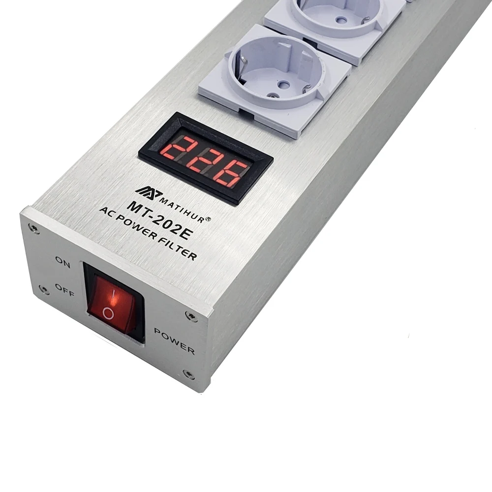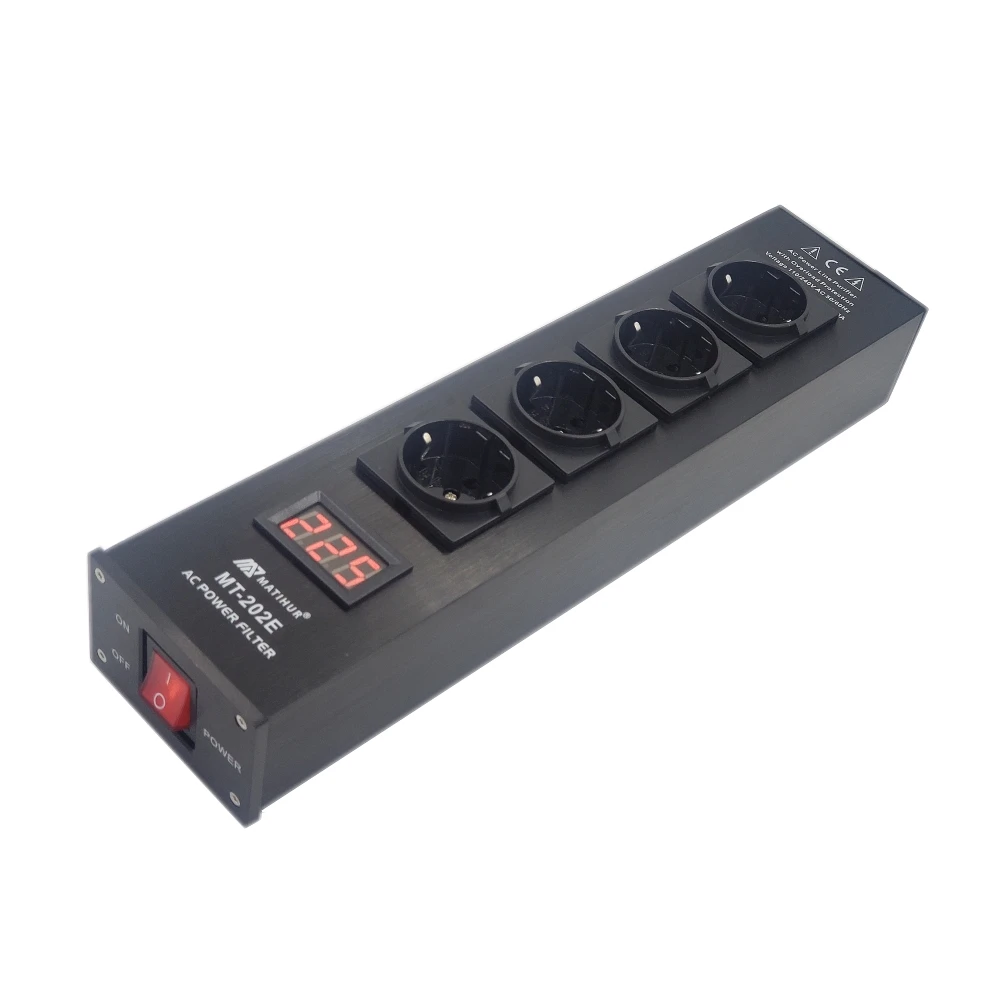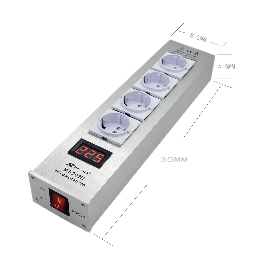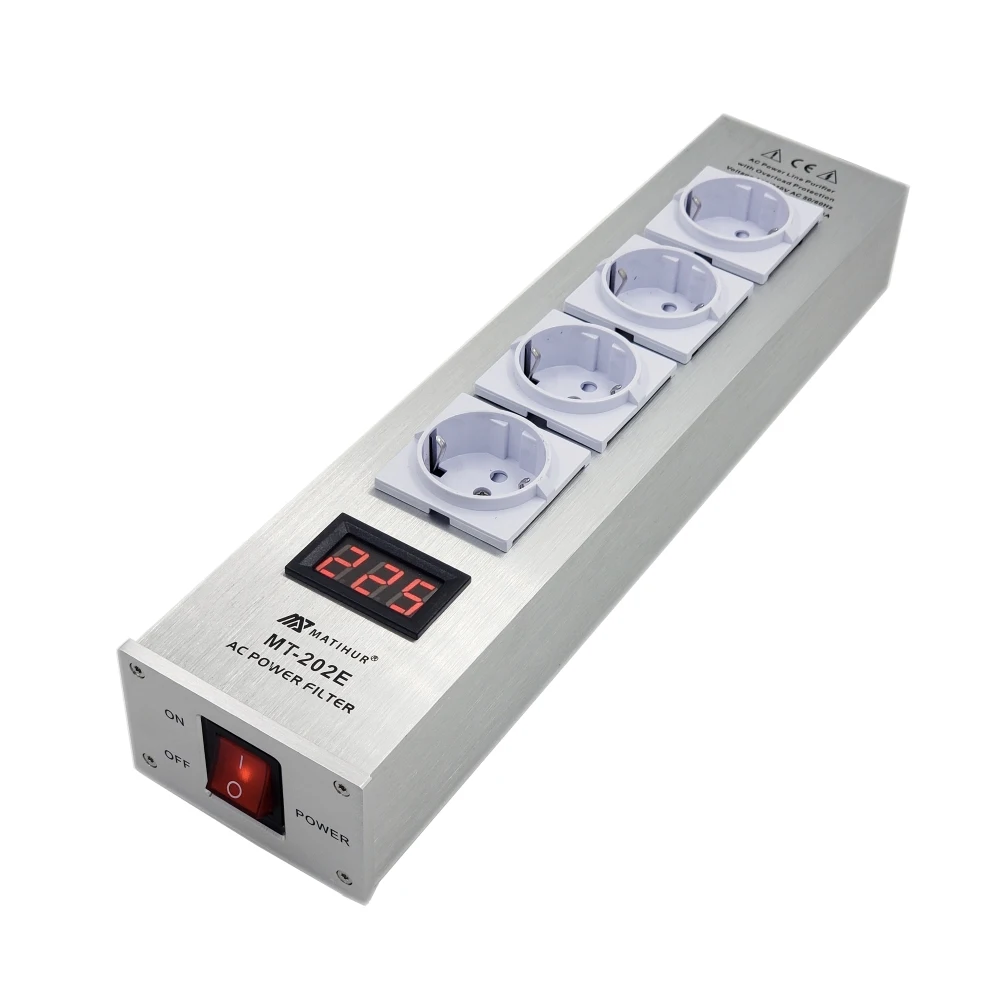 Imagine effortlessly powering all your high-performance audio-visual equipment with this this premium power strip. Its sleek, rectangular design with a durable aluminum case ensures both aesthetics and strength. Available in black or silver, this unit features four universal EU sockets protected by surge and anti-jamming filters, safeguarding your devices from power fluctuations and interference. With a rated power of up to 1500W and a current of 10A, it supports a voltage range of 110-250V at 50/60Hz, compatible with a wide variety of professional and home setups. The unit's high-quality components, including imported copper wiring and fever-level capacitors, guarantee stability, safety, and high efficiency during operation. This power strip is perfect for enhancing your entertainment or work environment, providing reliable power delivery, and peace of mind.