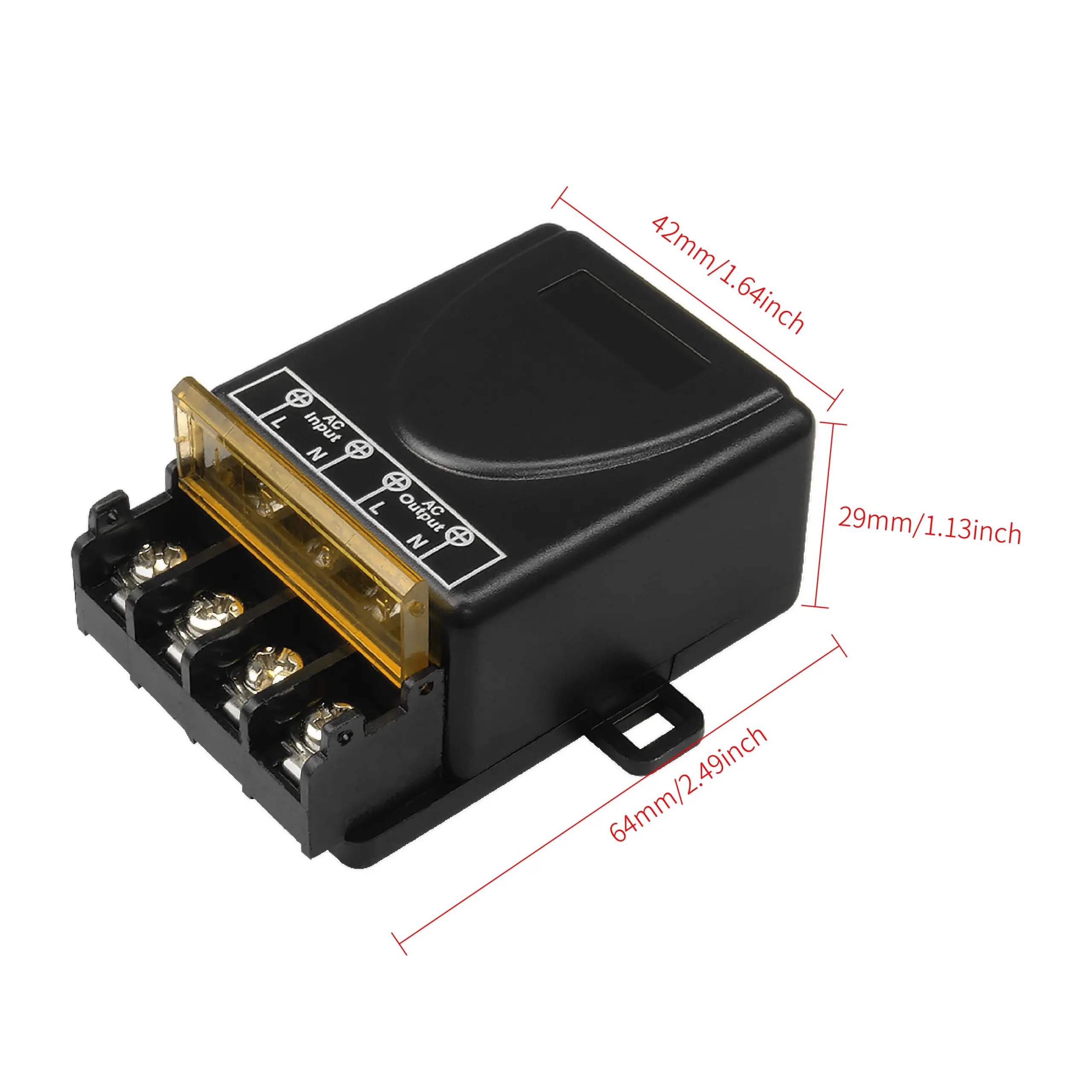 Experience seamless control with this high-power remote switch system designed for adult use, offering reliable wireless operation at 433 MHz. Its sleek black receiver unit features a textured matte surface with a compact rectangular shape, equipped with a small display window for status indication. Bright orange screw terminals provide clear connection points for wiring, ensuring safety and ease of installation. Complemented by two elegant remote controls with glossy black finish, silver chrome accents, and large tactile buttons, this system combines modern aesthetics with practical durability. Ideal for controlling water pumps, motors, LED lighting, or electrical appliances, it delivers effortless on/off operation with a responsive wireless range, supporting 30A loads at 220V AC. Perfect for those seeking advanced, stylish automation solutions.