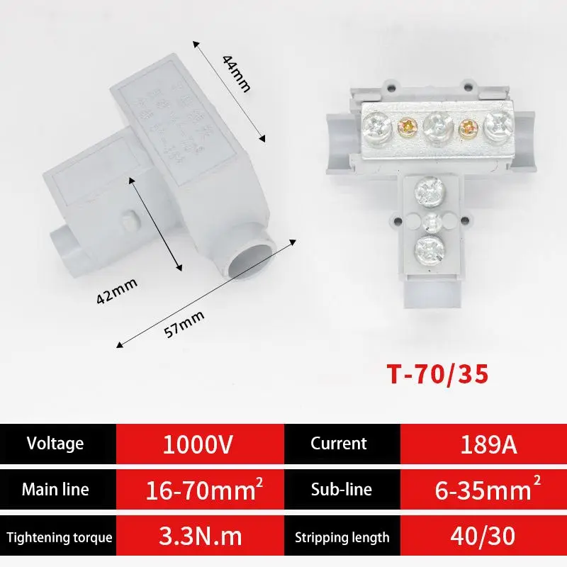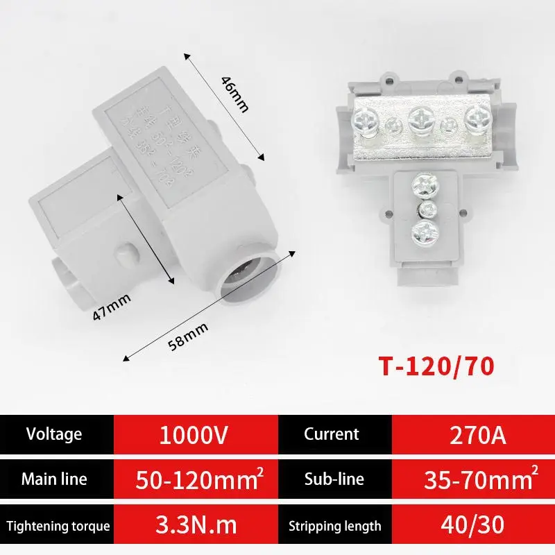 Enhance your electrical systems with this high-power T-type cable splitter featuring secure screw terminals, high-current capacity, and a professional industrial design. Its robustness and reliability make it ideal for heavy-duty, high-performance applications requiring durable, stable connections. Perfect for power distribution, industrial machinery, and demanding electrical setups, this product combines technical excellence with practical features to ensure safety and efficiency. Invest in quality with this UL-certified connector for long-term dependability and seamless power management.