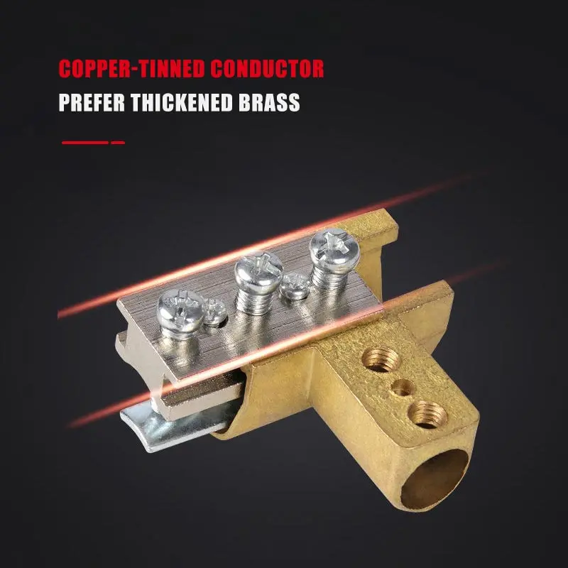 - Equipped with multiple Phillips-head screw terminals (five screws at top, three at bottom) for secure, corrosion-resistant connections to red insulated cables.