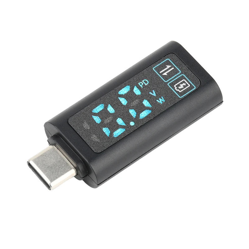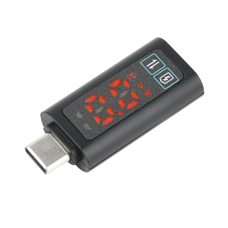 Experience precise monitoring with this high-power digital voltage and power meter designed for advanced electronic devices. Compact yet powerful, this 100W smart meter features a sleek black casing with a modern, minimalist design. Its bright LED digital display shows real-time voltage (“2.53V”) and power consumption (“3.39W”) in striking blue, making readings instantly clear. The device seamlessly blends style and function, supporting fast charging and high-speed data transmission up to 370M/S. An intelligent detection chip automatically identifies connected device types, optimizing charging parameters and enhancing safety. Its compact size (40mm x 17mm x 8mm) allows for easy integration into various setups, perfect for monitoring high-power electronic devices with confidence and precision.