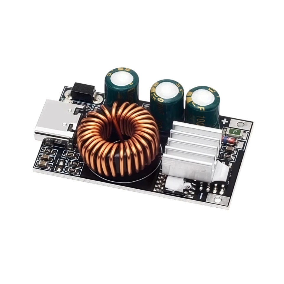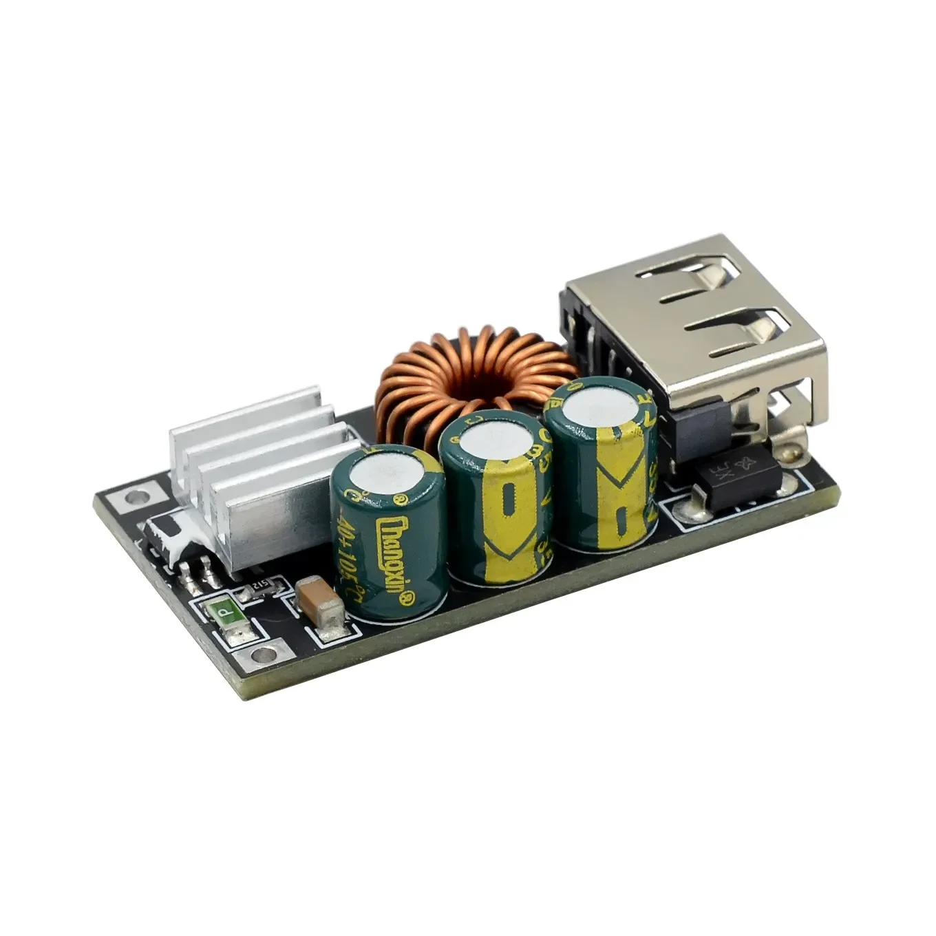 Experience the power and efficiency of this high-quality fast charging module, designed to meet your charging needs with precision. Its sleek black surface houses dense electronic components, including vibrant green electrolytic capacitors, shiny copper inductors, and subtle white heat sinks, creating an aesthetically appealing yet functional device. Compact and portable, this module automatically adjusts voltage from 3V to 12V to support multiple fast charging protocols such as QC3.0, FCP, Apple 5V2.4A, VIVO dual engine, and MediaTek PE. Ideal for DIY projects, it integrates seamlessly into custom charging solutions, providing up to 24W of power with reliable, efficient performance. Elevate your charging experience by making this essential module part of your toolkit.