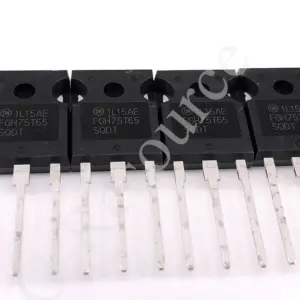 Experience reliable high-power performance with the Takin Chip FGH75T65SQDT IGBT transistor, designed for demanding applications requiring 650V and 75A. Encased in a robust TO-247 package with a sleek black plastic body, this new, field-effect transistor features crisp white markings, including the model number and logo, ensuring easy identification. Its flat, glossy top surface offers a professional appearance, complemented by evenly spaced, tarnished silver metal pins for durable through-hole mounting. Suitable for high-voltage, high-current environments, this product combines modern industrial design with superior functionality, making it an essential component for power electronics projects. Available in date codes 2013 and 2020.