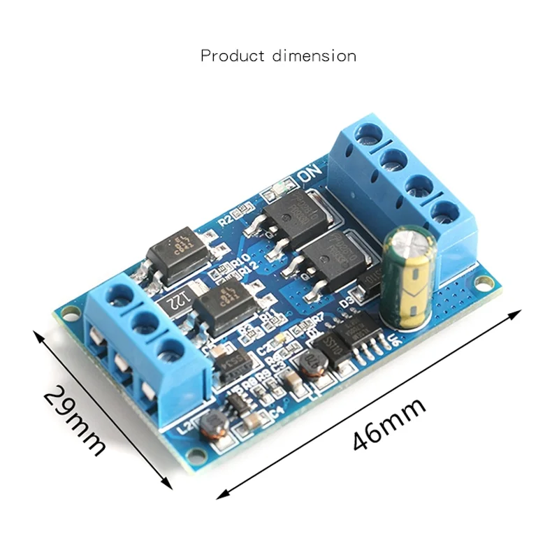 This high-power MOS tube trigger drive module measures 4.6 x 2.9 x 1.5 cm and supports operating voltages from DC 4V to 60V. It delivers a maximum output of 10A at room temperature, with a power capacity of 600W, and can handle up to 15A with auxiliary cooling. The module offers high-level trigger (DC 3.0V–24V) and low-level trigger (DC 0V–0.6V) inputs, compatible with PWM signals up to 2.5KHz, making it ideal for controlling high-power devices like motors, LEDs, micro pumps, and solenoid valves. Its robust design ensures infinite switching service life across a temperature range of -40°C to 85°C.