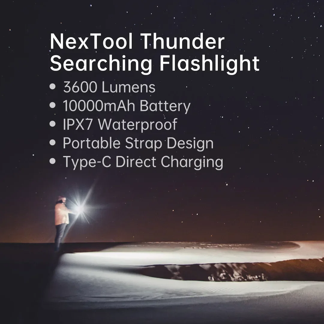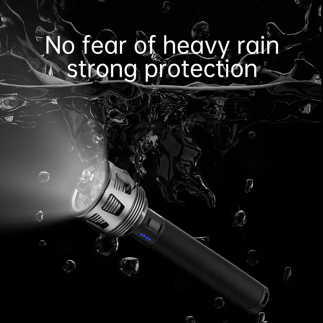 Experience powerful illumination with this rugged aerospace aluminum alloy LED flashlight, featuring a 3600 lumen output and a beam distance of up to 450 meters. Equipped with a 10,000mAh battery pack made of two 26650 cells, it supports USB Type-C fast charging (5V/2A) with a full charge in approximately 4.5 hours. Its IPX7 waterproof design makes it ideal for outdoor adventures like camping and search missions. The flashlight measures 64x34x241mm, weighs around 650 grams, and offers adjustable zoom, three switch modes (high/middle/low), and multiple brightness levels (5-8 files). Complete with a shoulder strap and charging cable, it ensures reliable, high-performance lighting wherever your journey takes you.