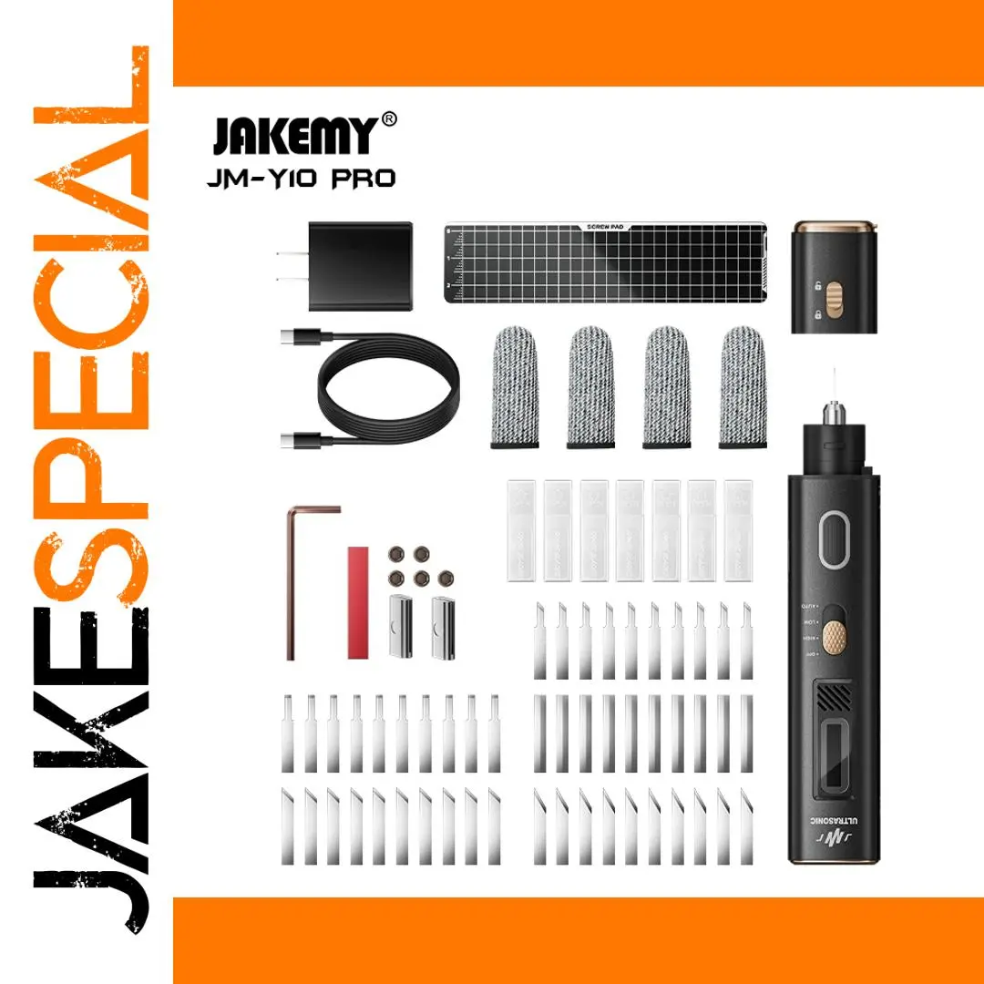Experience precise and versatile craftwork with this sleek black ultrasonic cutter, featuring a compact cylindrical design with a gold-colored control dial, ergonomic textured grip, and a bright front LED light. Powered by a robust 35W dual-core PZT ceramics and titanium alloy transducer, it operates at a true 40kHz frequency for efficient cutting, grinding, and polishing across materials like carbon fiber, acrylic, leather, metals, wood, 3D-printed resins, and PCBs. The device includes a high-tech OLED dual-display for real-time mode, temperature, and blade feedback, ensuring safety and control. Its proprietary 24mm, 30° flat-tip blade, along with optional specialized blades, and safety features such as child lock, make it an ideal tool for DIY enthusiasts, model makers, and professional post-processing.