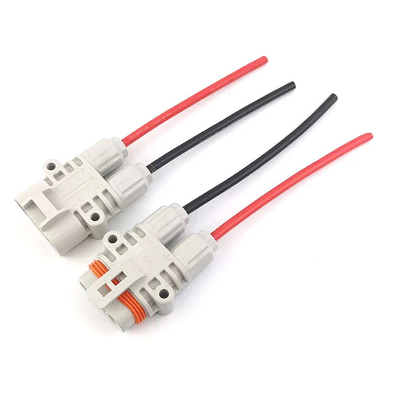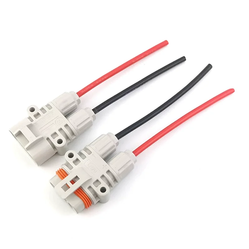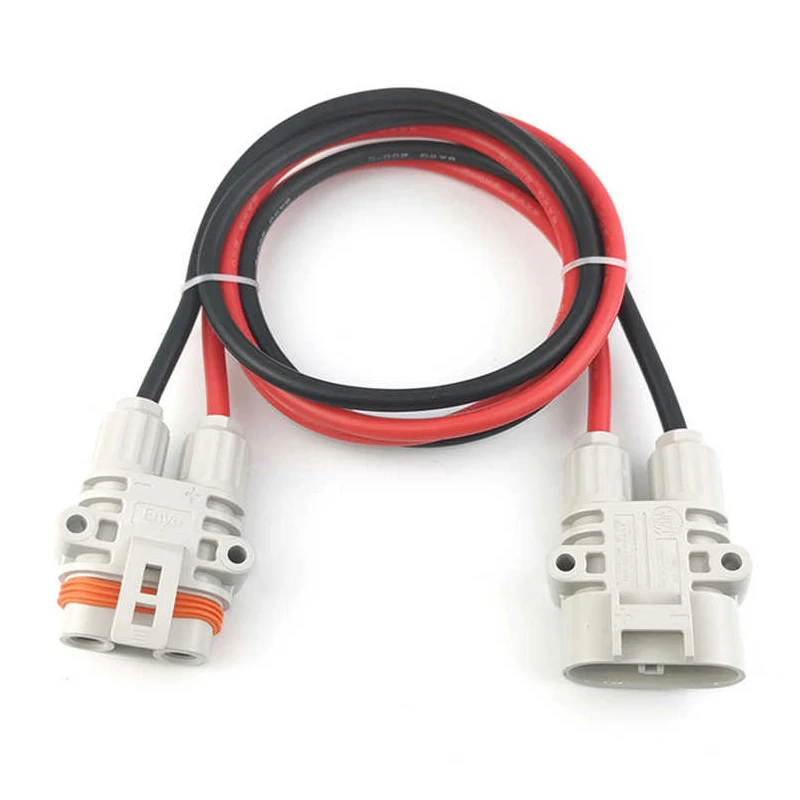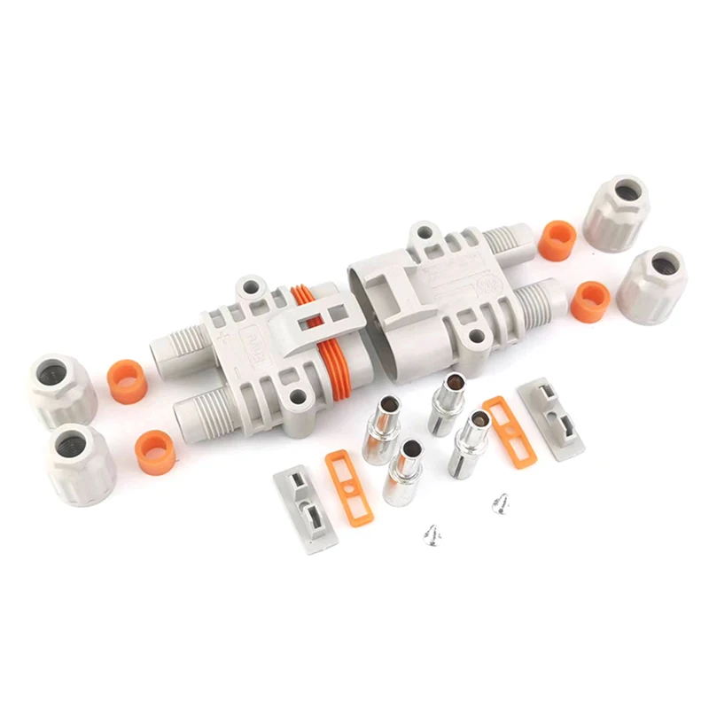 Discover a reliable, rugged set designed for heavy-duty electrical connections. Perfect for vehicle, air conditioning, inverter, and generator applications, this set features robust male and female connectors with durable, weather-resistant insulation. The white plastic body of the connectors is textured with grooves for secure handling, while bright orange rubber seals ensure waterproof integrity around connection points. The set includes wire options in red and black for quick identification and safety. With a current rating of 120A and capacity of 1000V, these plugs are built to withstand tough outdoor environments. Their reusability and strong sealing make them ideal for frequent, secure connections in demanding settings, providing peace of mind and lasting performance.
