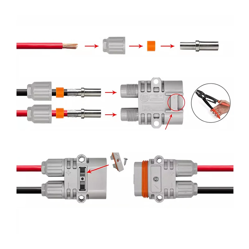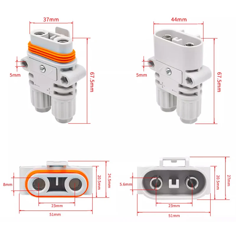 - Bright orange rubber seals around connection points guarantee waterproof performance, preventing moisture ingress and ensuring safe electrical contact even in harsh weather conditions.
