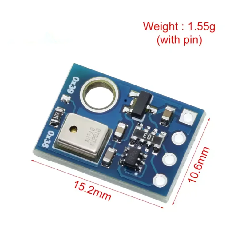 - Compact 16x11mm size with a vibrant blue PCB, ideal for space-constrained projects requiring precise environmental data.