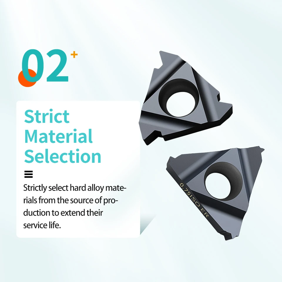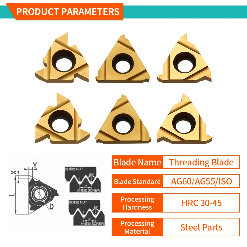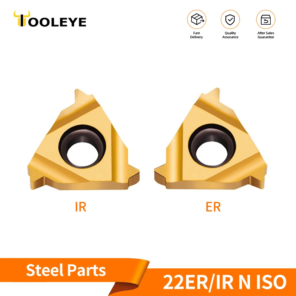 Experience precision and durability with our high-quality cemented carbide threading inserts modeled after the TOOLEYE 22ER 22IR series. Available in models N55 and N60, these inserts feature shank diameters of 22ER and 22IR, with ISO angles ranging from 3.5 to 6.0 degrees. They come with options for nano-coating (LDA in grayish-black, LDC in gold) or uncoated (K15), designed for optimal performance on CNC machining centers and lathes. Suitable for processing diverse metals including carbon steel, cast iron, stainless steel, copper, and aluminum, these inserts boast high shock resistance, wear resistance, and an efficient chip removal groove, ensuring smooth, precise threading in demanding industrial applications.