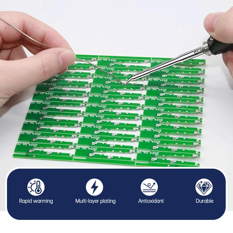 - Made from high-quality copper with excellent thermal conductivity, providing fast heating and stable temperature control during soldering tasks.