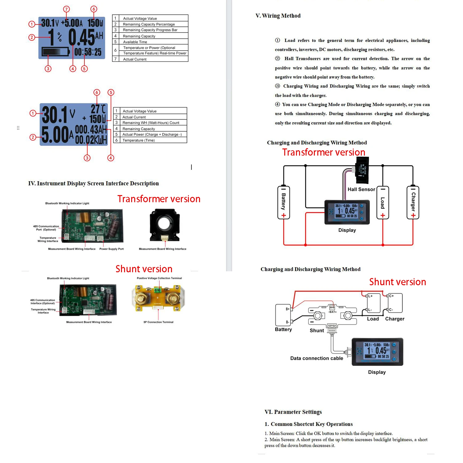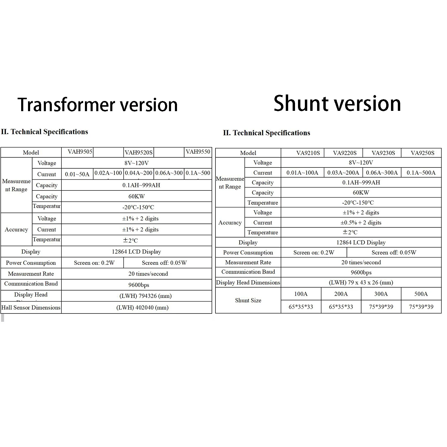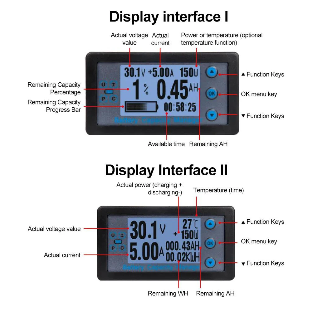 Enhance your battery monitoring with this high-precision Coulomb meter featuring a 128×64 LCD display that provides real-time voltage, current, power, remaining capacity, and usage time. Supporting voltage inputs from 8V to 120V and current capacities of 50A, 100A, 200A, 300A, and 500A, it is compatible with a wide range of batteries including lead-acid, LiFePO4, and lithium-ion types. Ideal for electric vehicles, RVs, solar systems, and laboratory setups, this low-power device combines technical accuracy with a sleek design, making it an essential tool for reliable energy management.