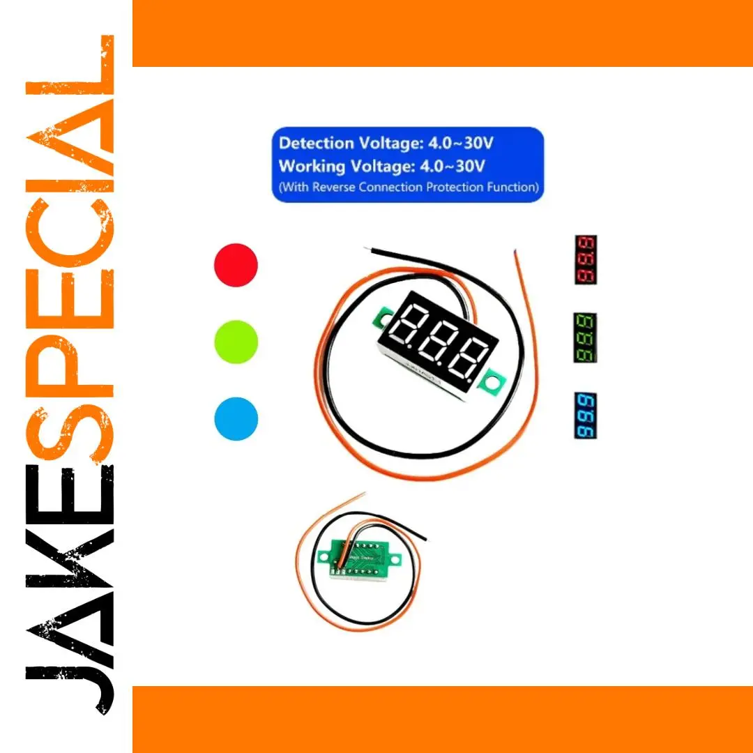 Experience accurate voltage readings with this sleek, modern digital voltmeter. Designed in three vibrant colors—red, green, and blue—it seamlessly integrates into your setup with a minimalist, matte finish. Its 0.36-inch LED display ensures clear visibility and the automatic decimal point shifting provides precise measurements from 2.70V to 32.0V, depending on the model. Compact yet robust, this device is perfect for monitoring DC voltage in various applications, offering reverse connection protection and minimal power consumption. Without needing external power, it draws directly from the measured voltage, making installation clean and straightforward. Its high accuracy and durable build promise long-lasting dependability, enhancing your project's safety and performance.