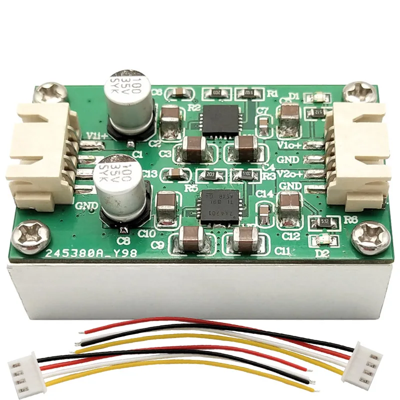Experience precise and reliable power delivery with this dual-output linear power supply module, featuring two TPS7A4701 regulators capable of handling input voltages from 3V to 35V. It offers adjustable output voltages of 5V, 9V, 12V, or 15V, with a maximum current of 1A per channel (2A in parallel) and ultra-low noise of 4µVRMS. The compact 50×30×24mm design includes a heatsink for efficient thermal management and built-in protections like overcurrent and thermal shutdown. Ideal for powering high-precision analog circuits such as op-amps, DACs, ADCs, audio, and RF devices with low ripple (<2mV) and superb voltage regulation.