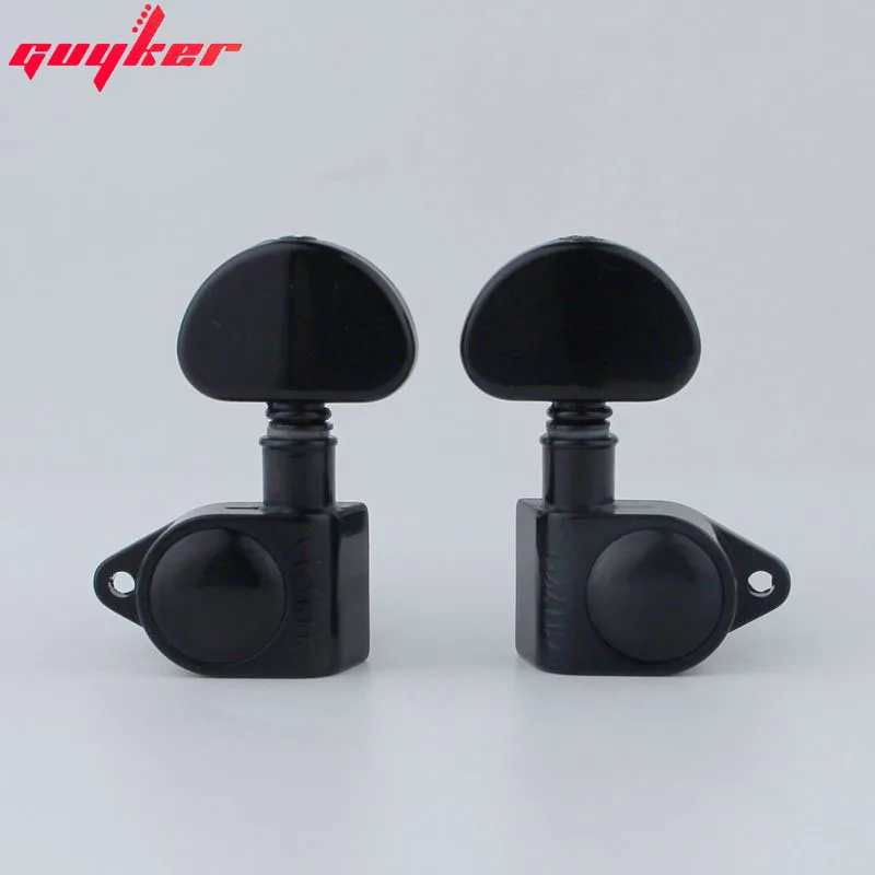 Enhance your guitar's performance with this high-quality set of guitar machine heads, featuring a sleek black finish and a 3R3L configuration. Crafted from durable metal, these sealed tuning pegs are engineered for stability, longevity, and accurate tuning adjustments. The large, ergonomic handles are flat on top and oversized for comfortable grip, making tuning quick and effortless. With a gear ratio of 1:21, you can enjoy smooth, precise operation that keeps your guitar perfectly in tune. Designed in Korea, these tuners add a modern aesthetic to any guitar headstock, combining functionality with a professional appearance. Experience the confidence of having top-tier hardware that elevates your playing and ensures your instrument remains reliably tuned over time.