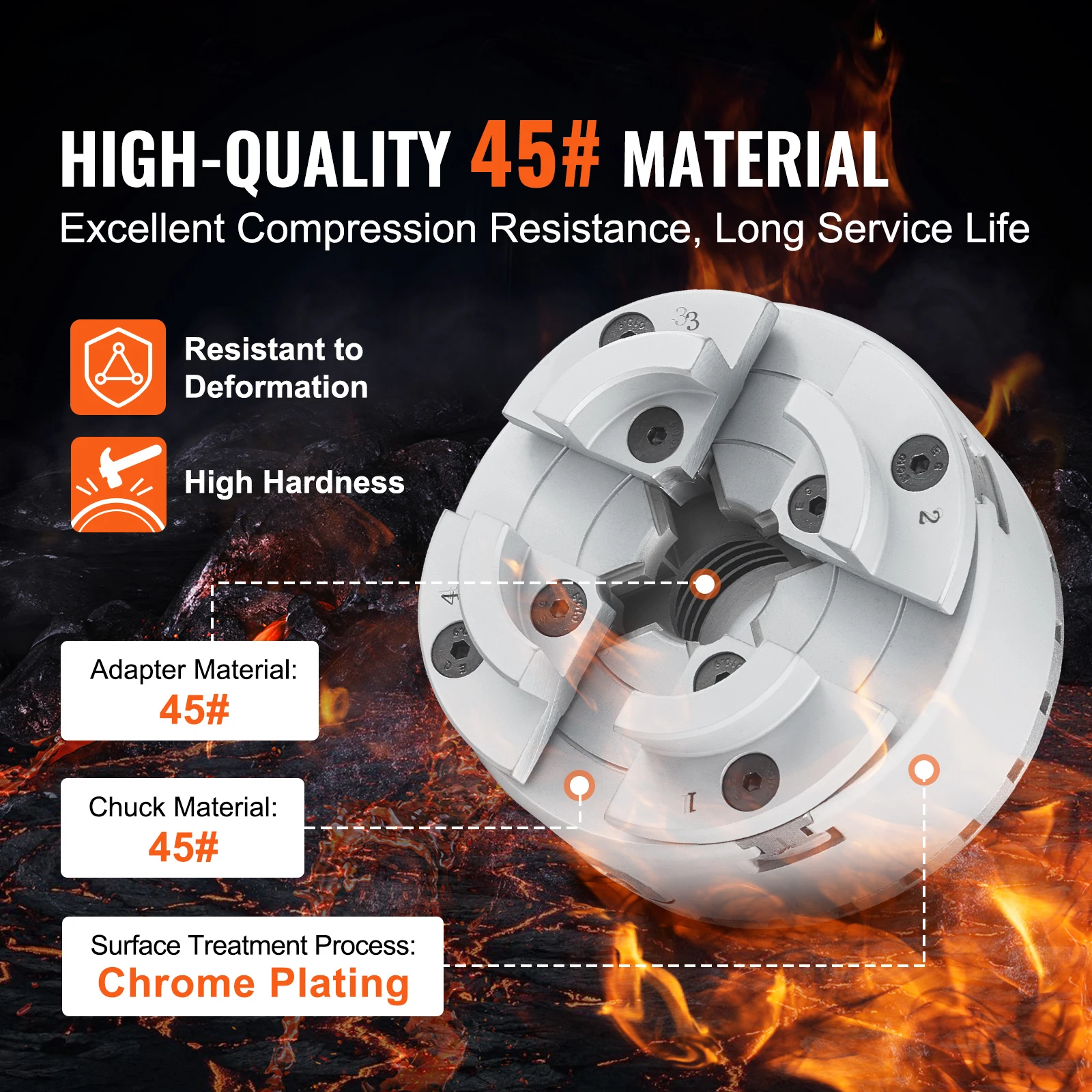 Experience precise and versatile machining with the KP965 metal lathe chuck, featuring a 3.75-inch outer diameter and a robust construction from #45 high-strength material, quenching and tempering for enhanced durability. Equipped with four jaws and a M33×3.5 TPI internal thread, it offers a wide clamping range of 1.26 to 2.75″ (32-70 mm) and support range of 1.77 to 3.4″ (45-86 mm). The set includes five types of jaws—dovetail, round, flat, step, and taper—plus installation tools for maximum flexibility. Its chrome-plated surface boasts ≤Ra1.6 surface roughness, with exceptional accuracy: outer diameter runout ≤0.15 mm, radial runout ≤0.40 mm at 50 mm, and face runout ≤0.15 mm. Weighing approximately 10.3 pounds (4.7 kg), this durable, easy-to-operate chuck is ideal for woodworking, drilling, grinding, and industrial applications.