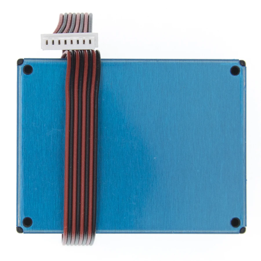 Experience accurate air quality monitoring with this highly durable, sleek blue sensor module. Its metallic casing with a smooth brushed finish combines modern design with industrial strength, providing reliable performance in various environments. The rounded edges and clean lines ensure a professional aesthetic, while the black screws add contrast and integrity. Bundled red and black wires highlight ease of connection, and the small functional ports and embossed features offer a technical look without clutter. This sensor’s compact, rectangular shape embodies a blend of sophistication and robustness, making it a perfect choice for integrating into air purifiers, environmental control systems, or custom environmental projects. Trust this module to deliver precise, real-time particle detection capabilities with a refined appearance.