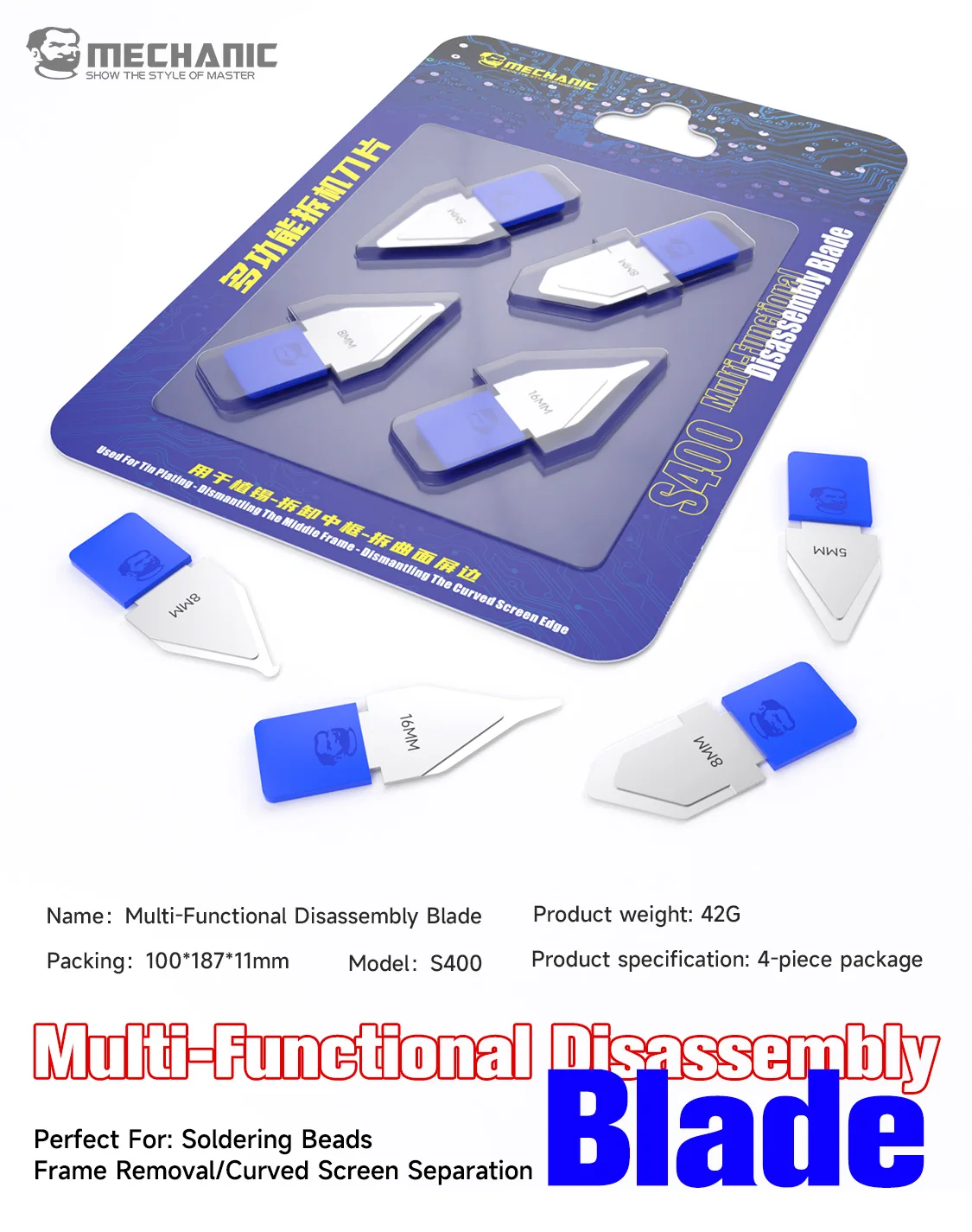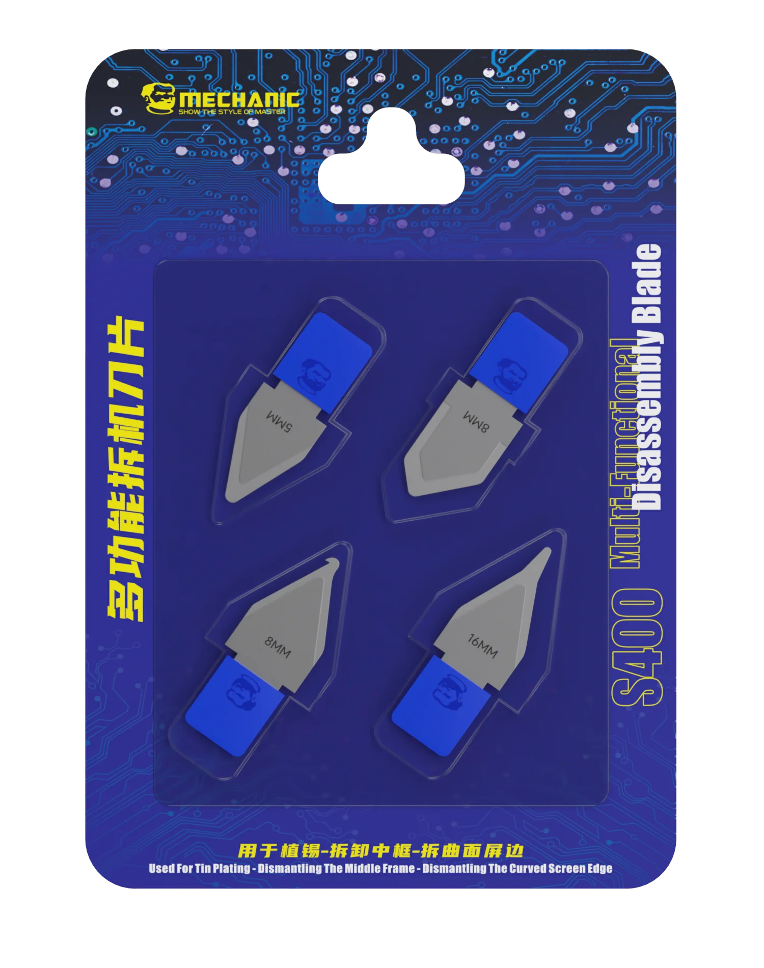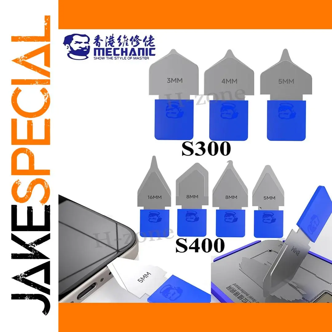 - Contains ultrathin, durable steel blades in two models, S300 and S400, with sizes ranging from 3mm to 16mm for versatile repair tasks on phones and laptops.
