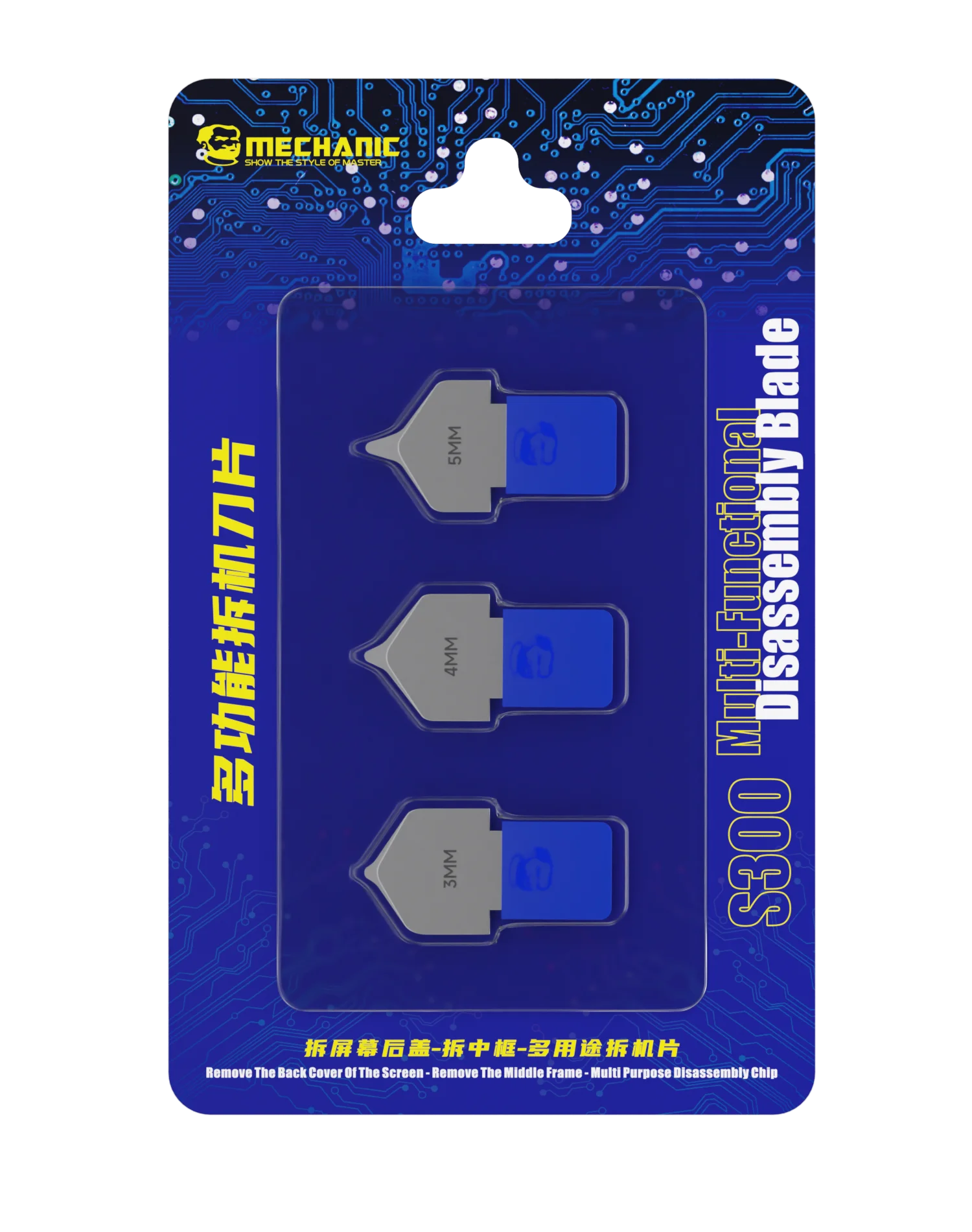 Imagine effortlessly opening your phone or laptop with this high-precision metal blade kit, designed for DIY enthusiasts. The sleek, ultrathin steel blades feature a polished metallic finish, combining industrial elegance with exceptional functionality. Each blade tapers gracefully into a sharp, pointed tip, perfect for prying open electronic device covers, separating screens, or removing batteries and chips. Available in two models—S300 and S400—they cater to different repair needs with sizes from 3mm to 16mm. The blades are partially embedded in blue plastic holders, which ensure organization and durability. Designed for ease of use, this kit offers professional-grade tools that elevate your repair experience while maintaining safety and precision at every step.