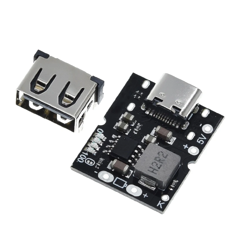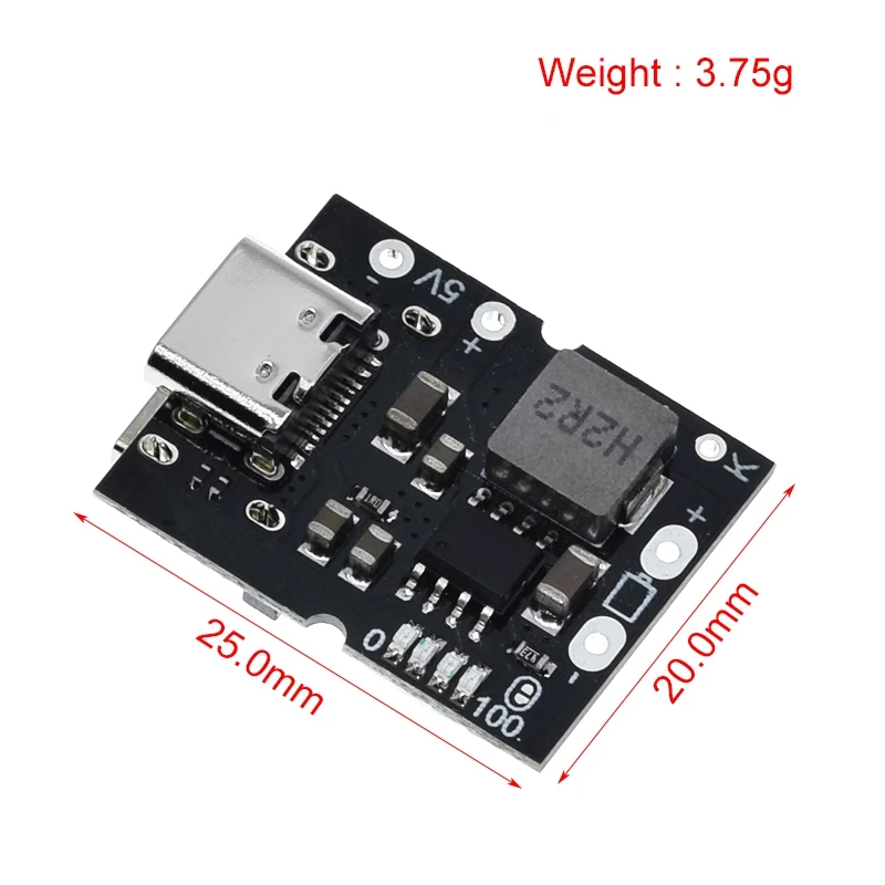 This this high-precision charge-discharge integrated module offers reliable power management for your DIY electronics projects. Featuring a sleek, black matte finish, it combines modern design with practical functionality. The rectangular shape and minimalist layout make it easy to integrate into various setups, while the metallic Type-C port adds an industrial touch of elegance. Neatly arranged surface-mounted resistors and capacitors ensure efficient filtering and regulation, supporting stable 5V output at 2A. Compatible with lithium batteries at 4.2V, the module regulates voltage within a range of 12 to 26V DC supply. Its durable construction withstands temperatures from -40°C to +85°C, ensuring consistent performance in demanding environments.