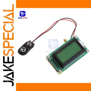 Experience precise frequency measurement with this high-quality frequency counter module, designed for radio enthusiasts and professionals alike. Its compact green PCB houses a clear 38mm by 16mm backlit LCD display, illuminating vital data in a subtle yellow-green glow that enhances readability. Built for durability and reliability, this device features a sturdy FR4 material construction, with four metallic screws securing the display for a sleek look. The SMA female connector ensures easy, secure input connections to antennas or test probes, making it perfect for ham radio testing and RF signal analysis. Weighing only 45 grams and measuring just 60x33x26.5 mm, this module combines portability with high performance, operating efficiently across a wide temperature range from -20°C to 65°C.