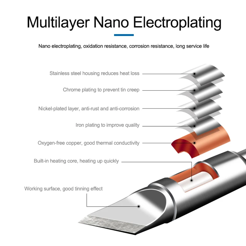 Choosing this soldering tip means selecting durability, precision, and compatibility. It’s designed to meet the demands of professional electronics work while providing the flexibility of various tip sizes. Enjoy the confidence of a high-density plated surface and efficient heat conduction, making your soldering experience smoother and more efficient. Upgrade your toolkit now and enjoy the quality that keeps you ahead in your craft.