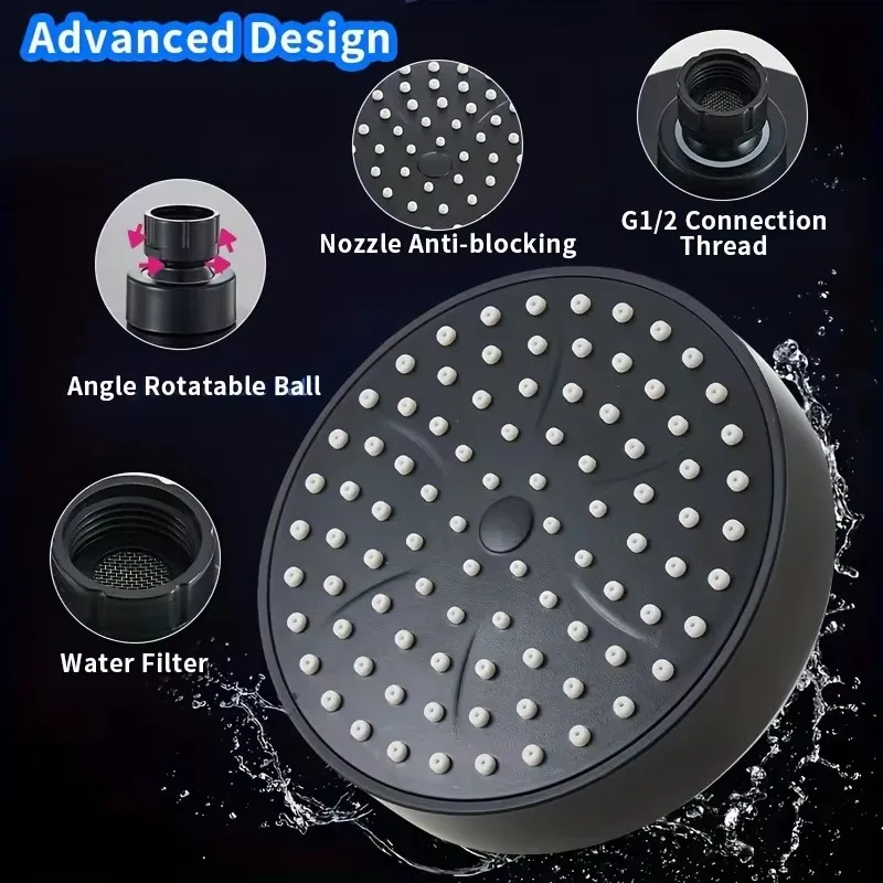 - Constructed from durable ABS plastic with a sleek matte black finish for modern aesthetic appeal and long-lasting use. Its round shape complements contemporary bathroom designs effortlessly.