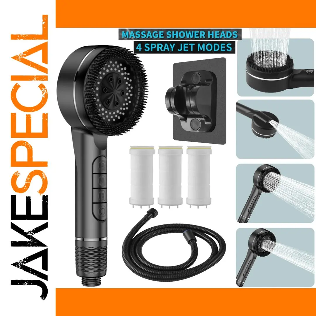 Experience a luxurious shower with this high-pressure, multi-mode shower head featuring four spray options: rain, massage, power jet, and mixing. Designed with a sleek black or gray matte ABS construction, it offers durable, heat-resistant performance. The user-friendly design includes an easy-switch button, a one-button water stop, and an integrated filter that deep cleans water by removing rust and odors while maintaining pH balance. The 1.5-meter kink-resistant hose and wall-mounted nozzle holder make installation effortless, requiring no tools. Enjoy a consistent, wide coverage shower while conserving water, creating a spa-like experience every time you step into your bathroom.