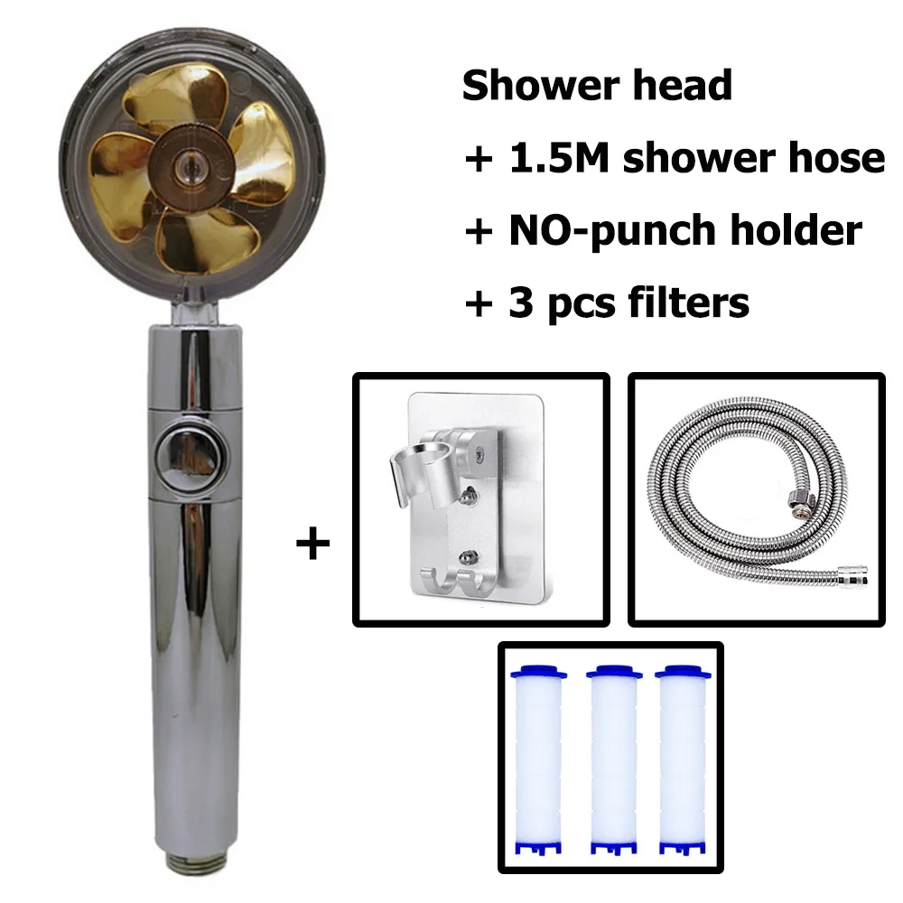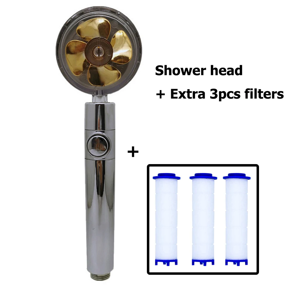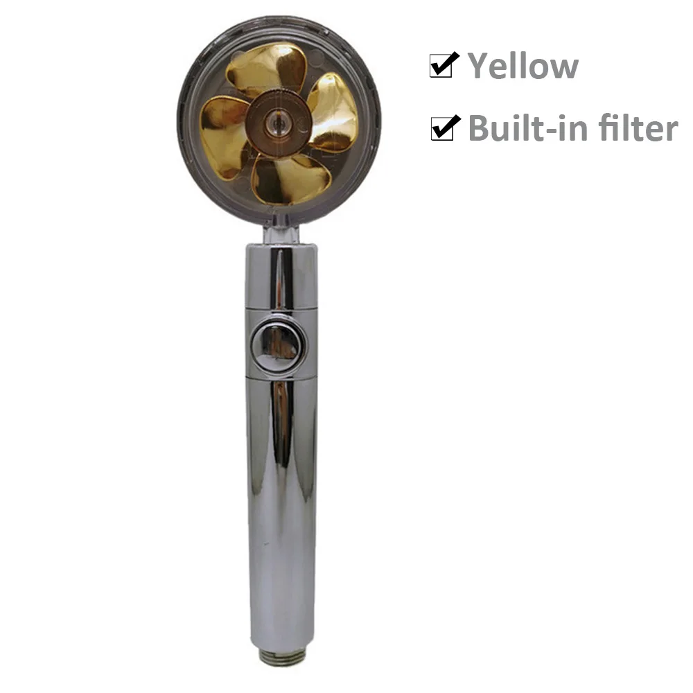 Experience an upgraded shower routine with this sleek, high-pressure propeller shower head. Crafted from durable ABS plastic with a shiny chrome finish, its modern round design adds elegance to any bathroom. The bright blue propeller fan inside, visible through a transparent cover, enhances the aesthetic appeal while delivering powerful water pressure. The 360° rotating head allows you to effortlessly direct water flow, providing flexible comfort. Equipped with micro nozzle technology, it produces a dense, fine spray for optimal coverage. The convenient one-key stop button makes water control simple. Plus, the disassembled design ensures easy cleaning, helping you maintain its pristine look. Available in multiple colors, this shower head combines style, functionality, and water efficiency seamlessly.