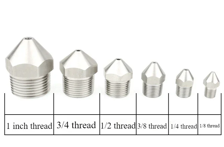 Experience the efficiency and durability of this stainless steel high-pressure water nozzle designed for industrial cleaning. Its sleek, polished surface reflects quality craftsmanship, while the pointed, cone-shaped tip with small holes ensures precise, powerful spray patterns. Available in sizes of 1/8″, 1/4″, 3/8″, and 1/2″ BSPT threads, it seamlessly connects to compatible hoses or piping with a 22mm inner diameter. Built to withstand operating pressures of 850 kPa or higher, this nozzle offers excellent resistance to corrosion and wear. Its minimum pressure capacity guarantees reliable performance in demanding environments, making it ideal for deep cleaning tasks or heavy-duty industrial applications. This high-quality nozzle combines form and function for a long-lasting solution that elevates your cleaning efficiency.