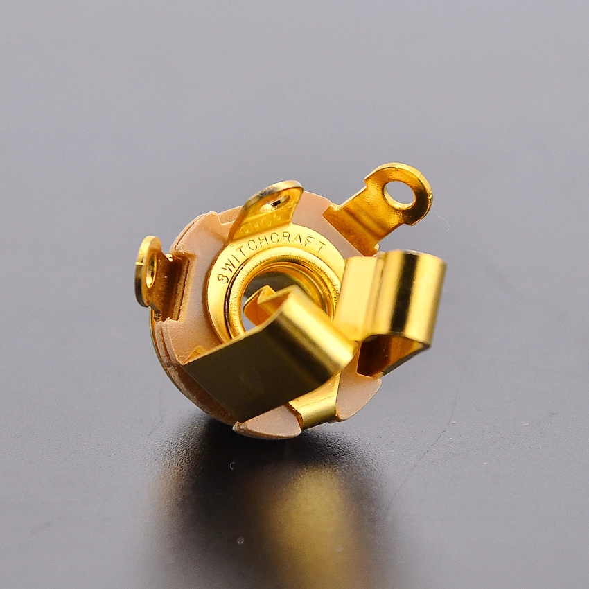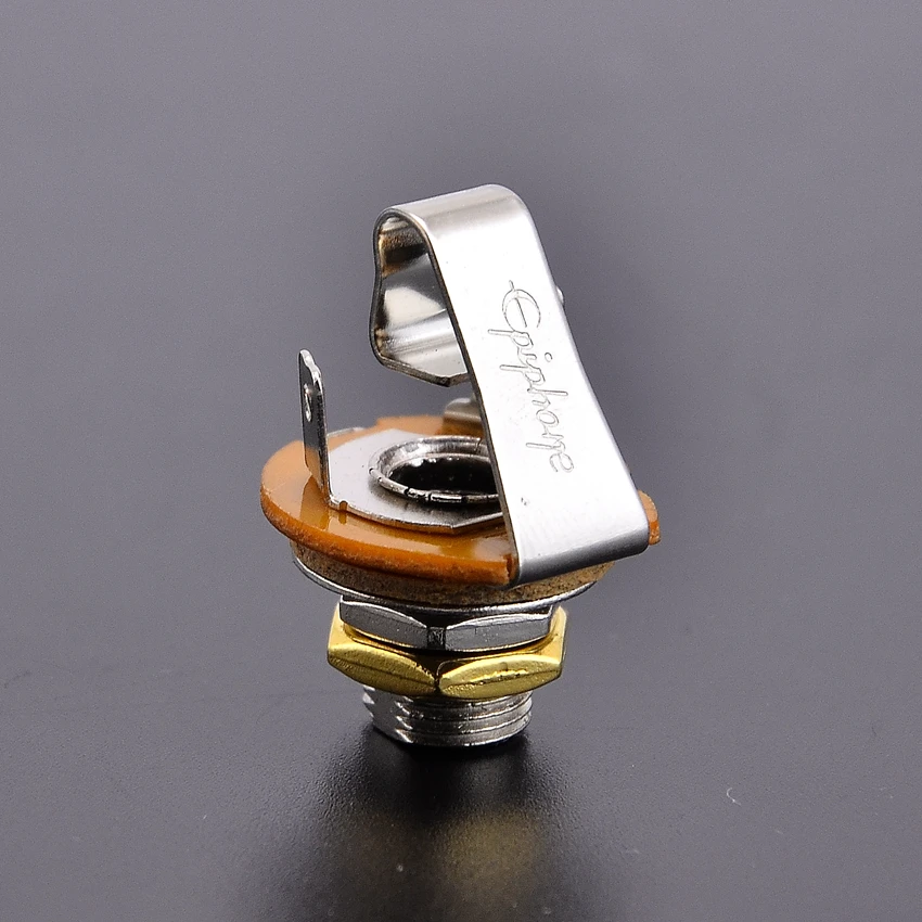 Imagine upgrading your electric guitar or bass with this premium open output jack, designed to ensure reliable and durable connections. Whether you're performing on stage or laying down tracks in the studio, this switchcraft jack guarantees a secure fit and enhanced sound quality. Its solid metal construction provides long-lasting durability, while the sleek finish adds a professional touch to your instrument. Available in several stylish colors, including silver, darker chrome, light beige, and bright gold, it seamlessly blends with any guitar aesthetic. Its lightweight design—only 8 grams—ensures minimal impact on your instrument’s balance. Trust this genuine component to deliver flawless performance every time you plug in, giving you confidence during your musical sessions.