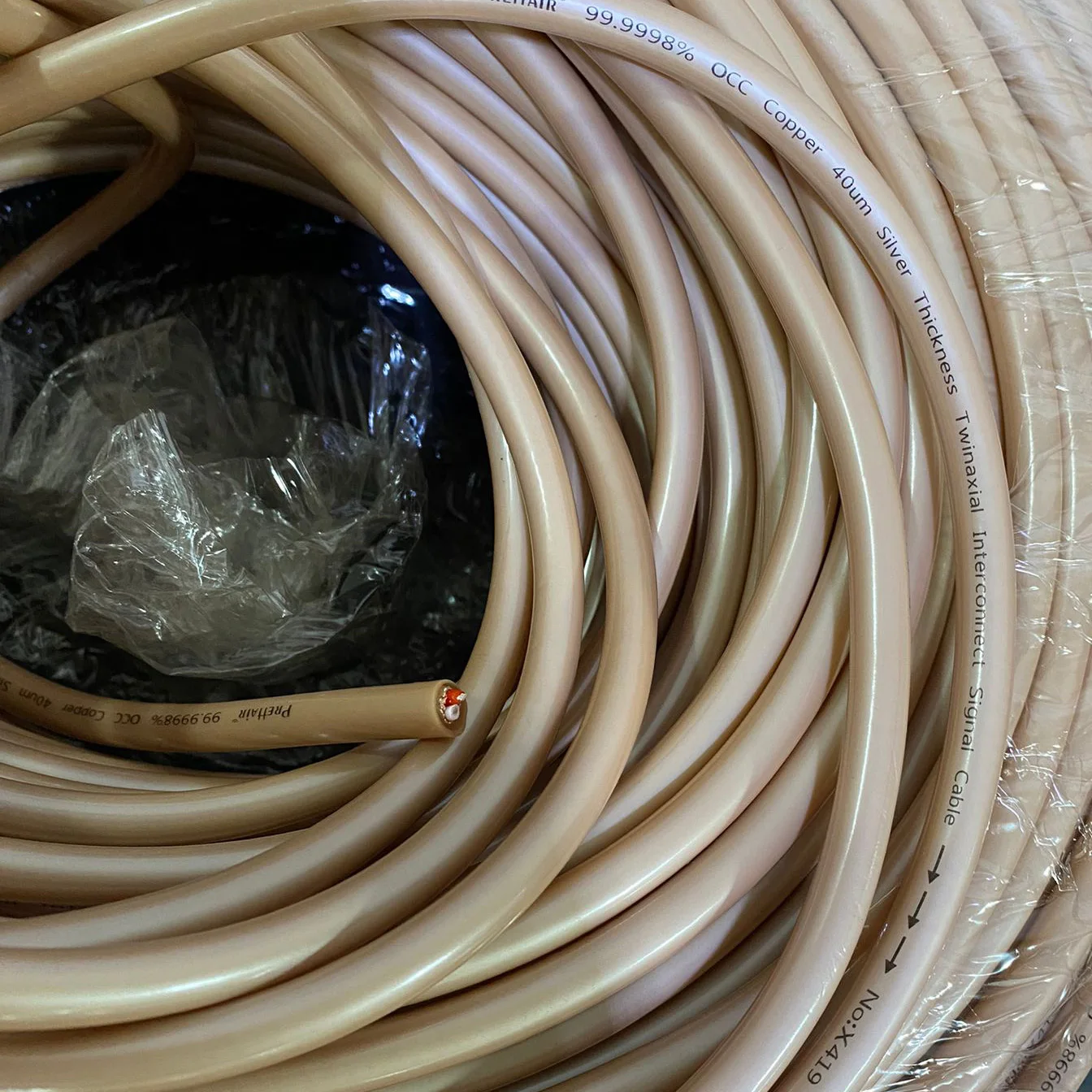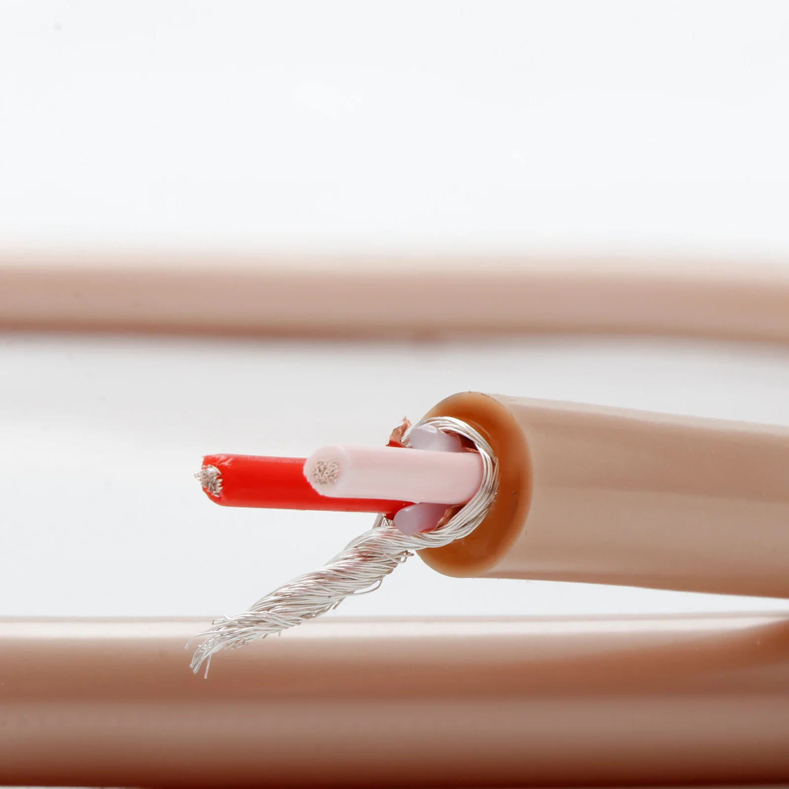 Experience premium audio performance with this handmade RCA interconnect cable, featuring a sleek cylindrical design with an 8.5mm diameter (8mm outer diameter). Available in 1 meter, 1.5 meters, or 5 meters lengths, it boasts a durable, light beige or tan outer sheath made of anti-UV PVC. Its internal construction reveals a highly conductive 4N OFC silver-plated braid shield, layered with silver foil and flame-retardant PVC for optimal signal integrity and safety. The cable features a male-to-female connector configuration, ideal for connecting amplifiers, CD players, microphones, DVD players, and multimedia devices. Designed for longevity and excellent audio clarity, it’s compatible with various regional standards for versatile use.
