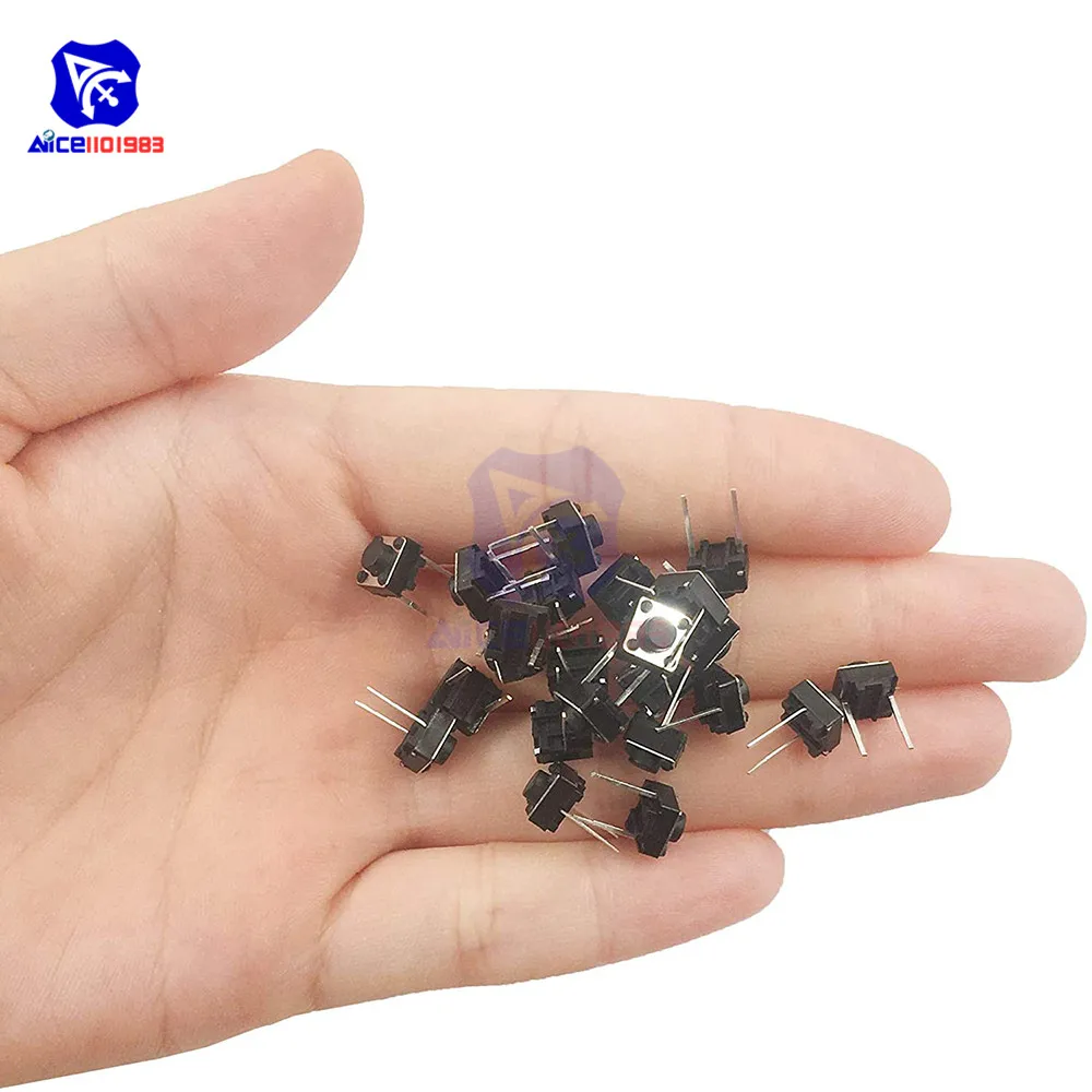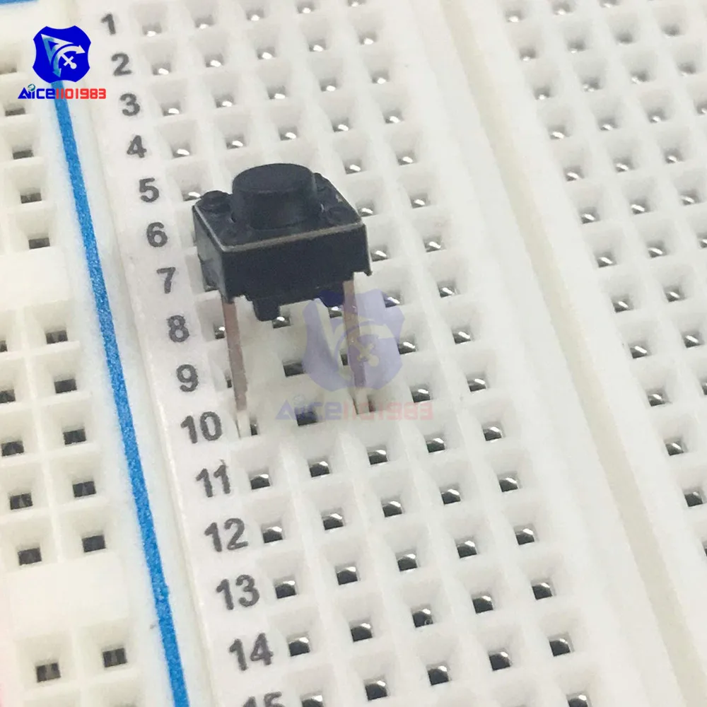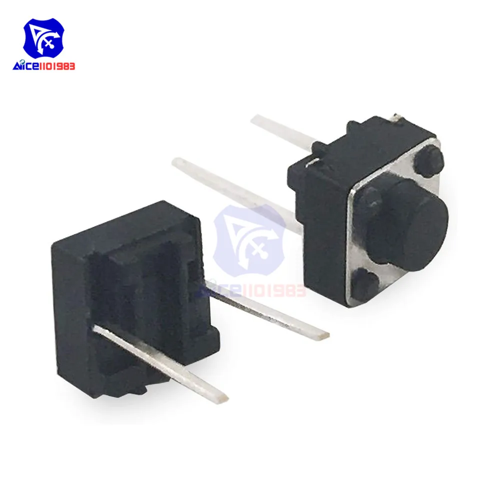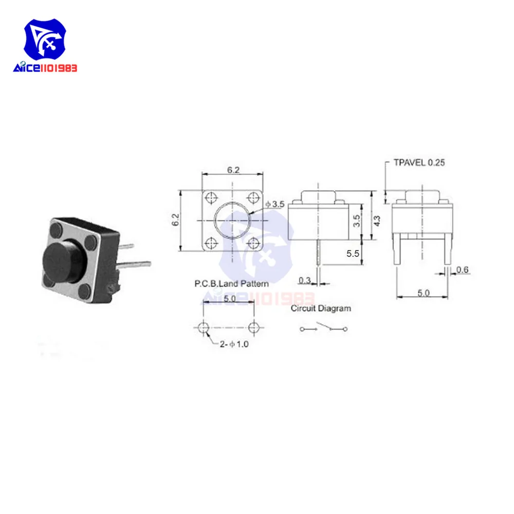 Experience reliable performance with these 100 high-quality 2-pin panel mount momentary tactile push button switches, available in 6x6x5mm and 6x6x4.3mm sizes. Crafted from durable plastic and metal with a sleek black or silver finish, each switch features a 3.5mm diameter button, 5.0mm height, and 5.5mm metal pins for secure PCB connections. Designed for operation at 12V DC and 0.1A, they boast a contact resistance of ≤0.03Ω, withstand voltage of AC 250V (50Hz), and an actuation force of 1.3 ±0.5N. With a lifespan of 100,000 cycles, these switches are ideal for electric toy applications and other precision electronic projects.