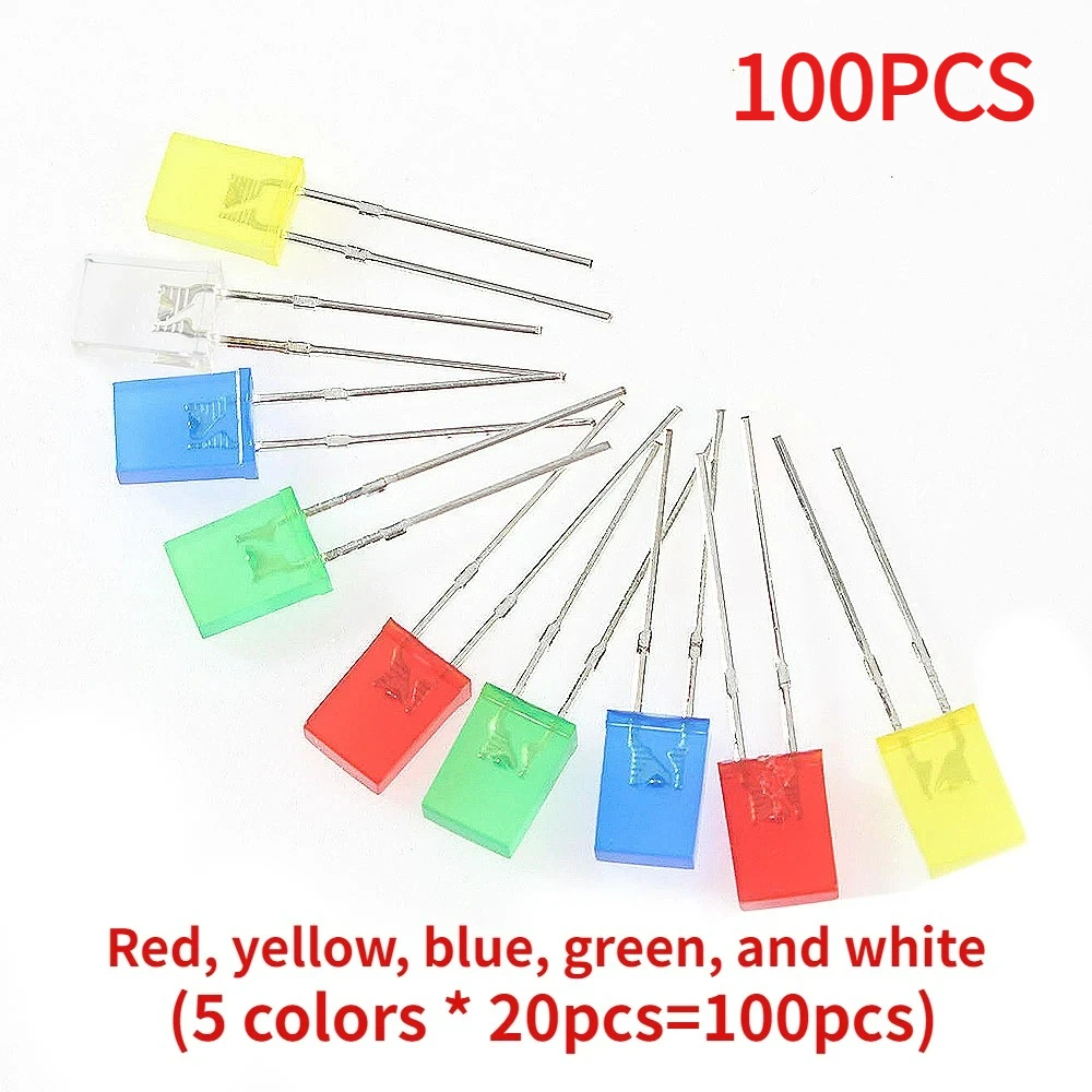 - Includes 50 or 100 pieces of 2x5x7mm high-quality LED diodes, available in five bright colors for versatile applications in electronic projects.