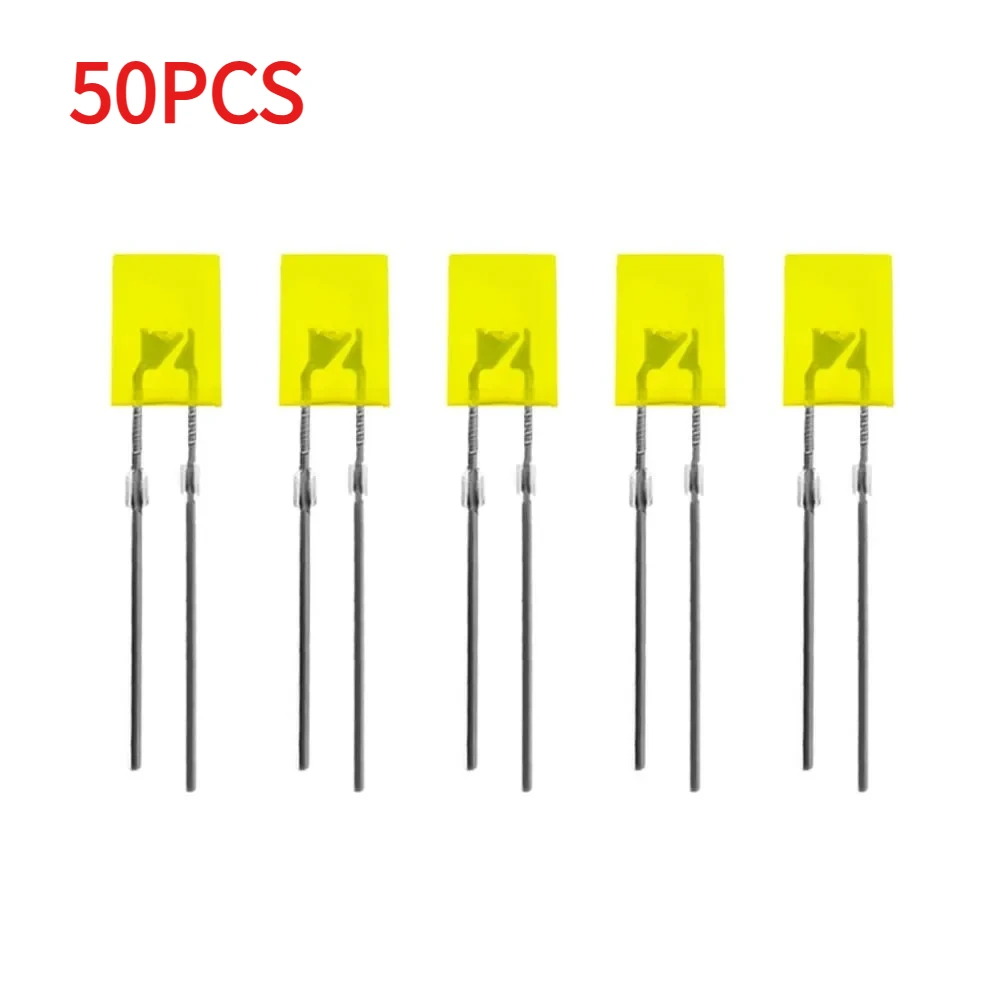 Immerse yourself in the world of electronics with this high-quality LED diode kit. Perfect for various applications such as traffic lights, indoor lighting, indicator lights, backlights, signs, and smart devices, these LEDs combine durability with vibrant color options to meet all your project needs. The set includes either 50 or 100 pieces, each measuring 2x5x7mm and designed for through-hole mounting. The sleek, rectangular, red-colored plastic housings deliver a polished appearance, while brightness and color versatility are guaranteed with options in red, yellow, blue, green, and white. Now, you can create professional and vivid electronic designs that truly stand out. Experience reliability and vibrant illumination in every project with these premium diodes.