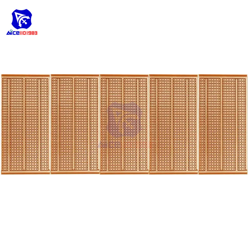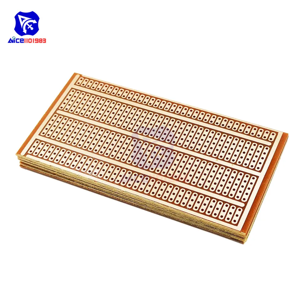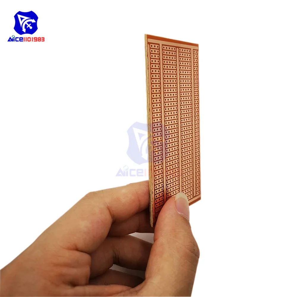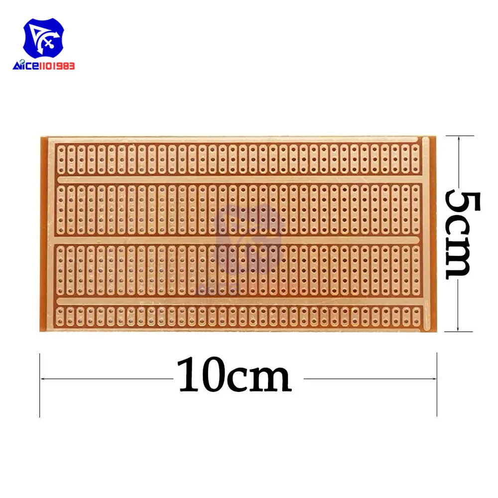 Imagine streamlining your next prototype with this high-quality set of five PCB boards. Each measures 50x100mm, designed for seamless integration with standard electronic components. Constructed from durable FR4 glass fiber, these single-sided PCBs feature a smooth, shiny copper surface ideal for precise soldering and reliable connections. Their 1.3mm thickness offers stability without added bulk. The copper traces are crafted with a minimum line width of 2.54mm and spaced with 2-3-5 joints, making intricate wiring easier and more efficient. Holes with a diameter of 1.0mm are evenly drilled to accommodate component leads or bridging terminals. Whether you are designing a prototype or a circuit module, these universal, easy-to-handle PCBs are perfect for any electronics enthusiast or professional seeking dependable prototype tools.